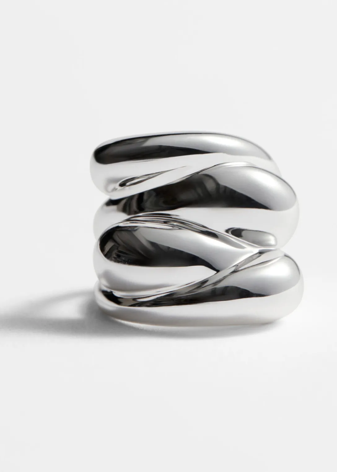 Cette bague est savamment sculptée avec des contours profonds évoquant des feuilles. Elles est fabriquée en laiton poli d’une belle brillance.