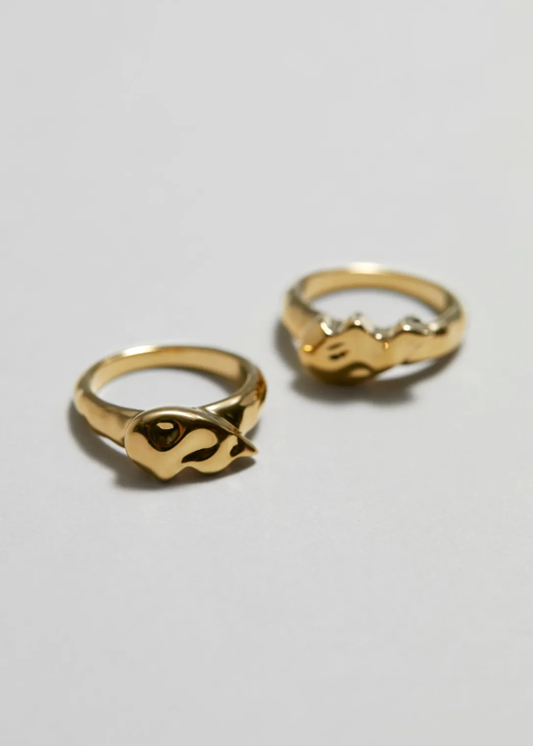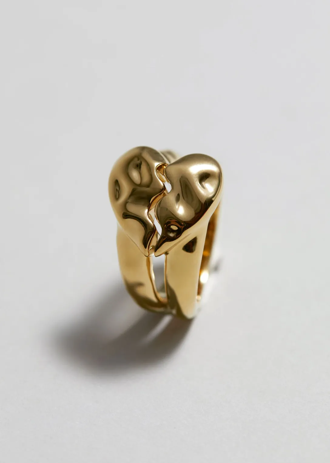Cet ensemble de deux bagues, fabriquées en laiton, est une nouvelle version du cœur d’amitié classique. Ensemble, elles forment un cœur.