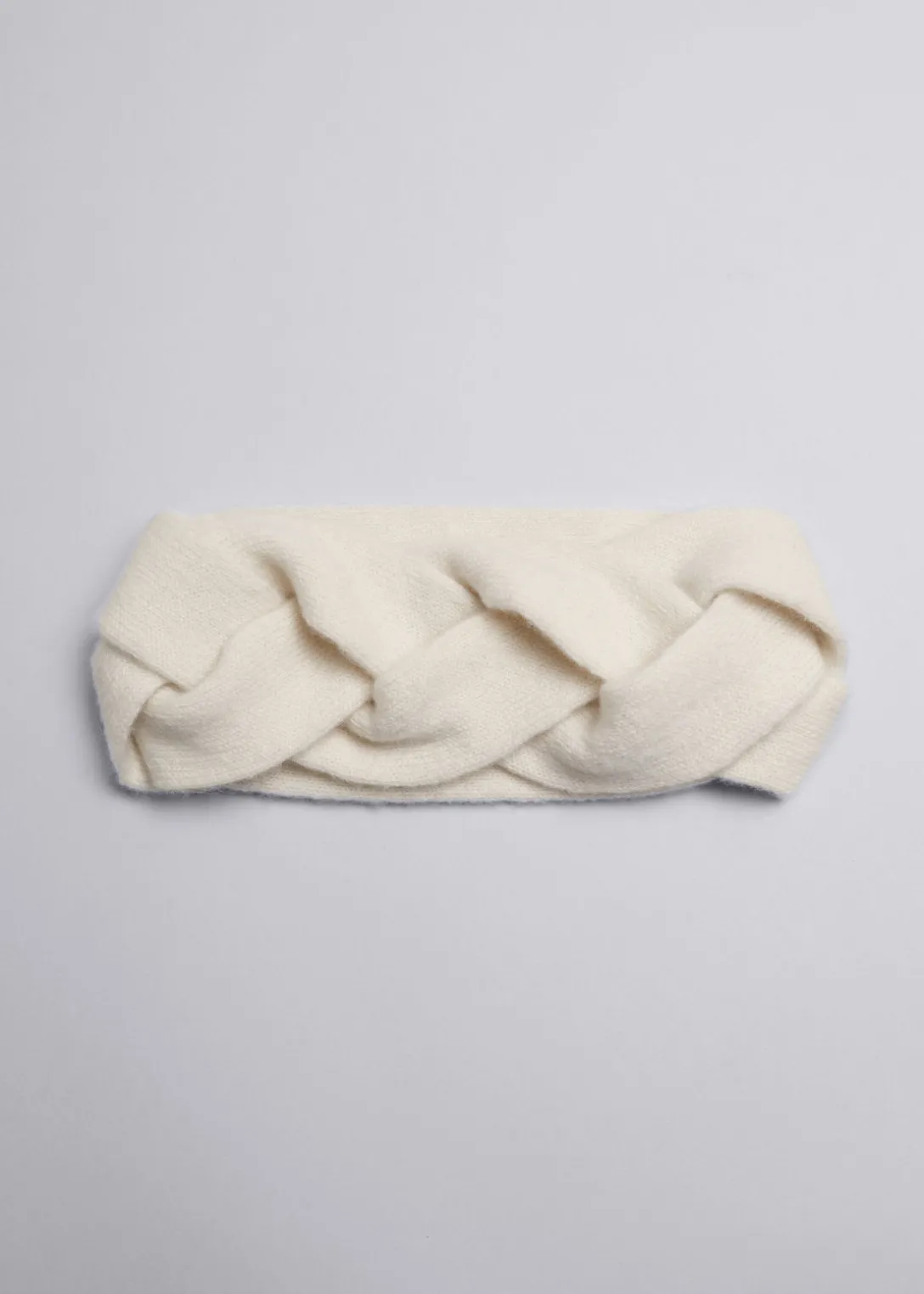 Bandeau tressé large en cachemire doux, avec une finition luxueuse.
