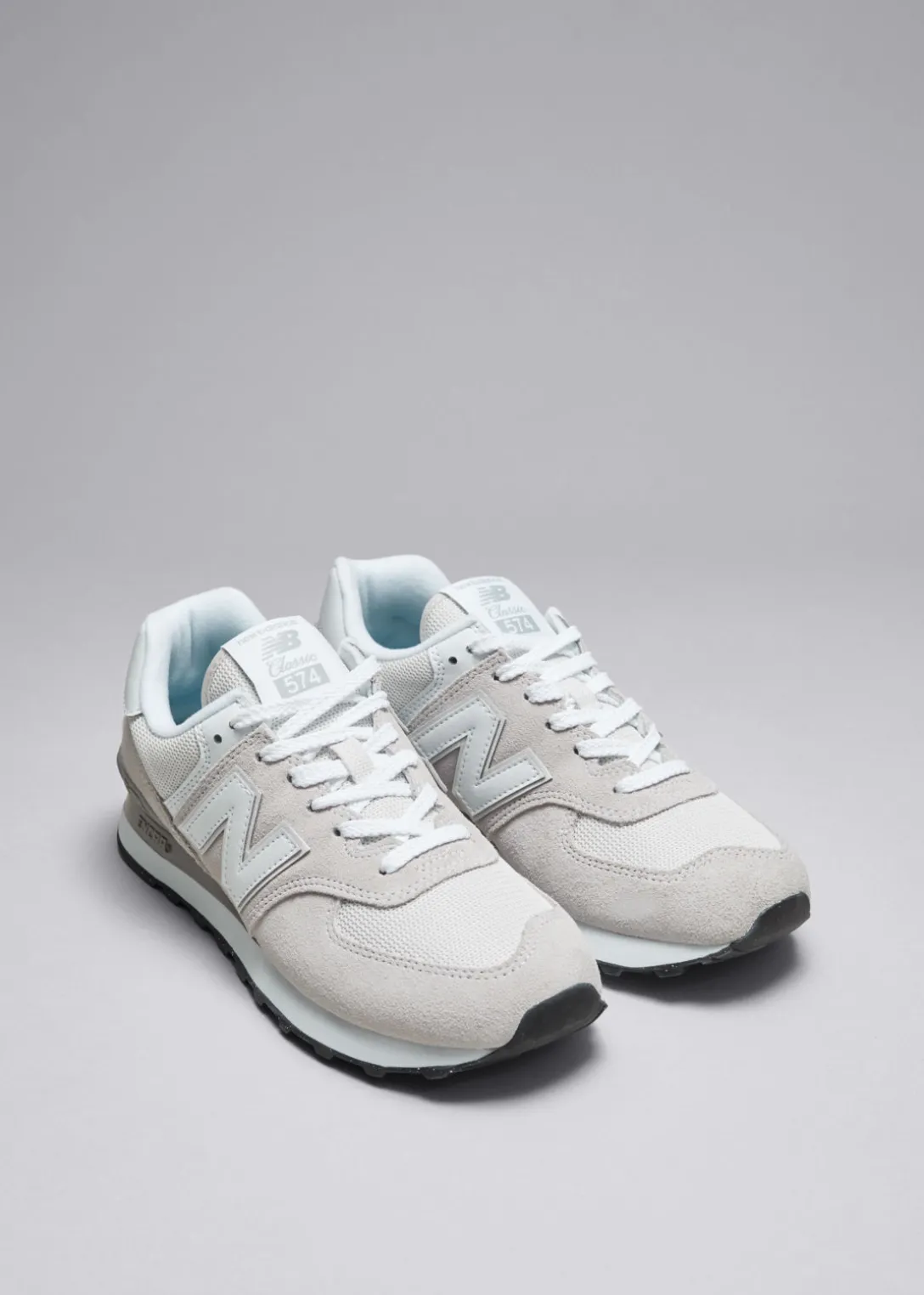 La New Balance 574 a été lancée pour la première fois en 1988. Cette version de ce modèle aujourd’hui emblématique possède une empeigne alliant daim et mesh, une semelle intermédiaire et un talon en mousse EVA pour un meilleur amorti et une semelle extérieure en caoutchouc.