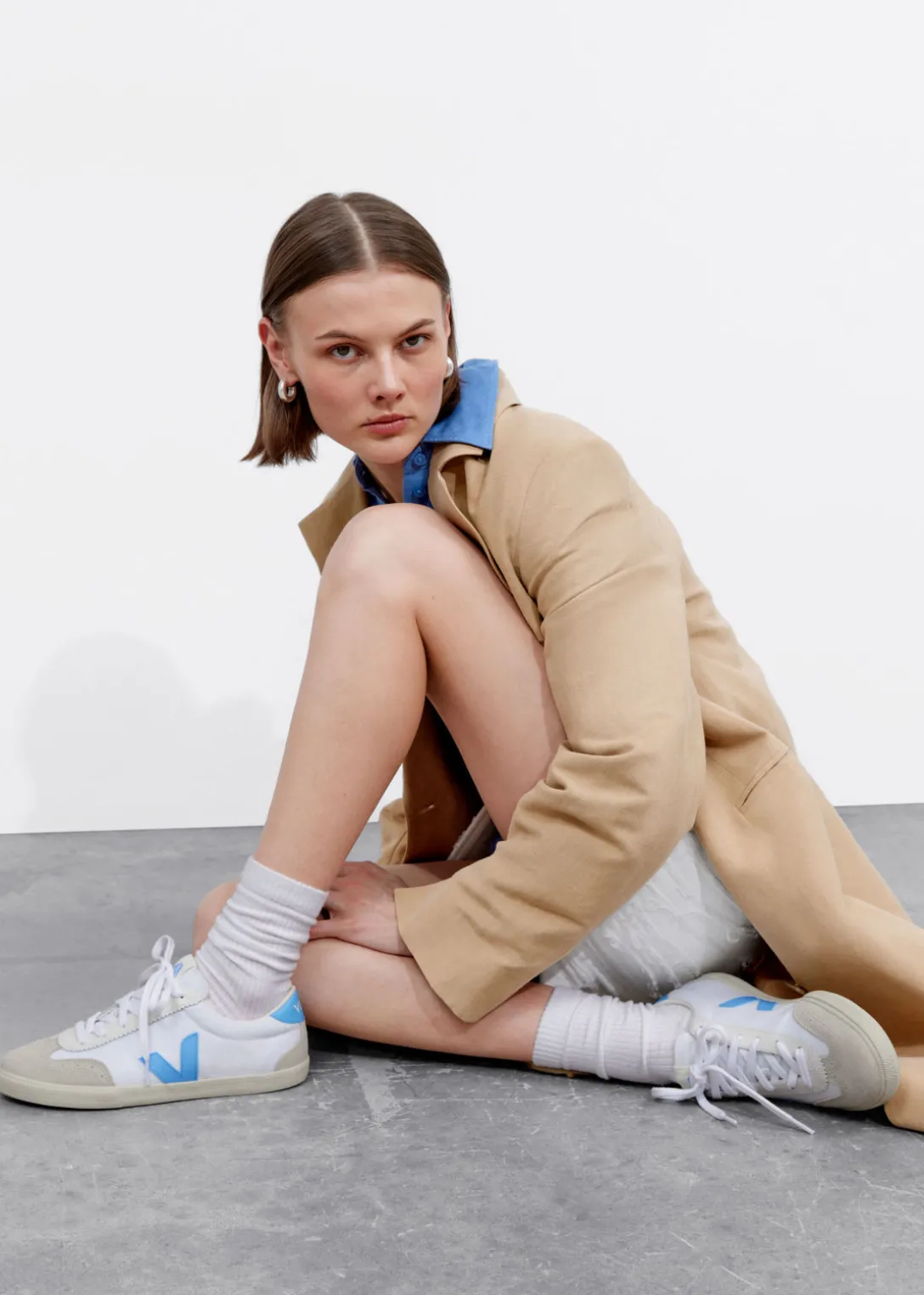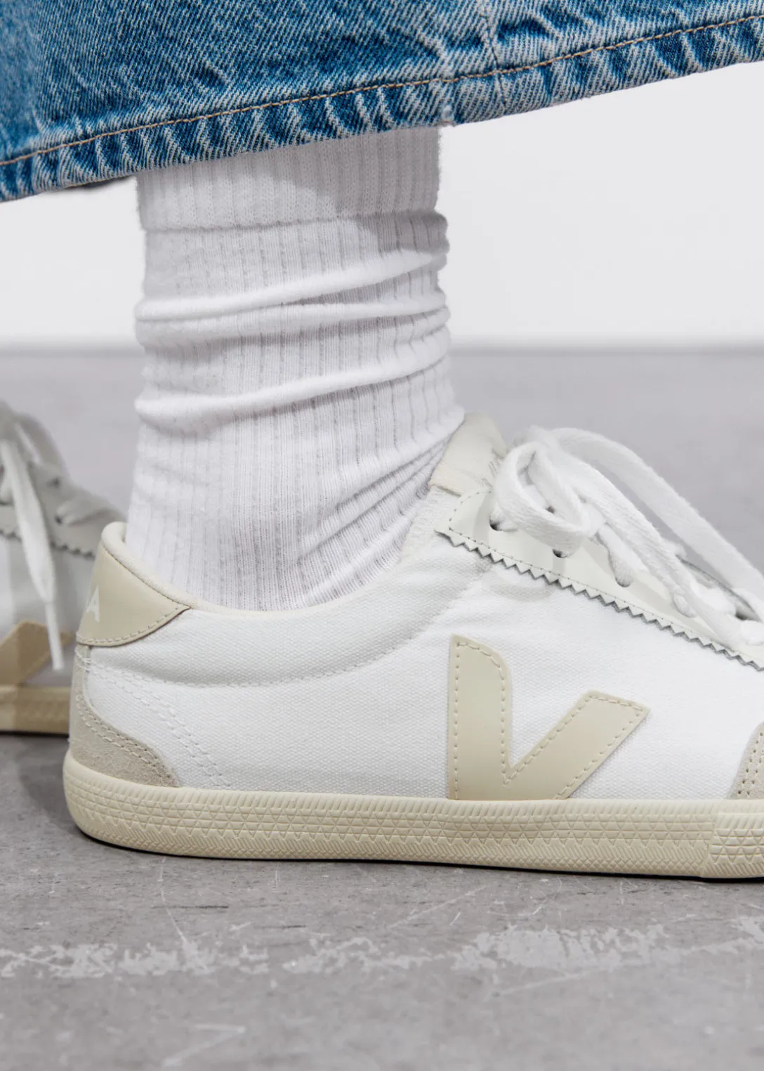 Inspirée par les chaussures de volley-ball brésiliennes des années 70, la marque VEJA ressort le modèle Volley. Cette silhouette aux détails élégants est confectionnée à partir de toile de haute qualité, avec des empiècements en daim et le logo classique sur le côté.