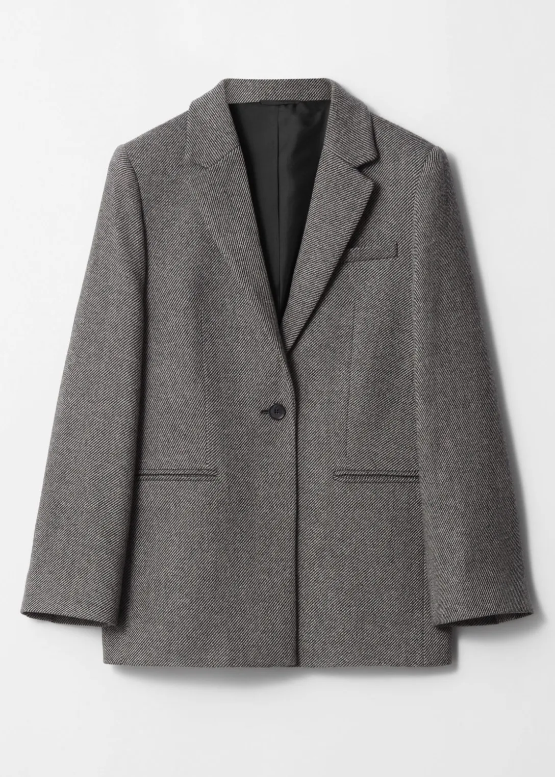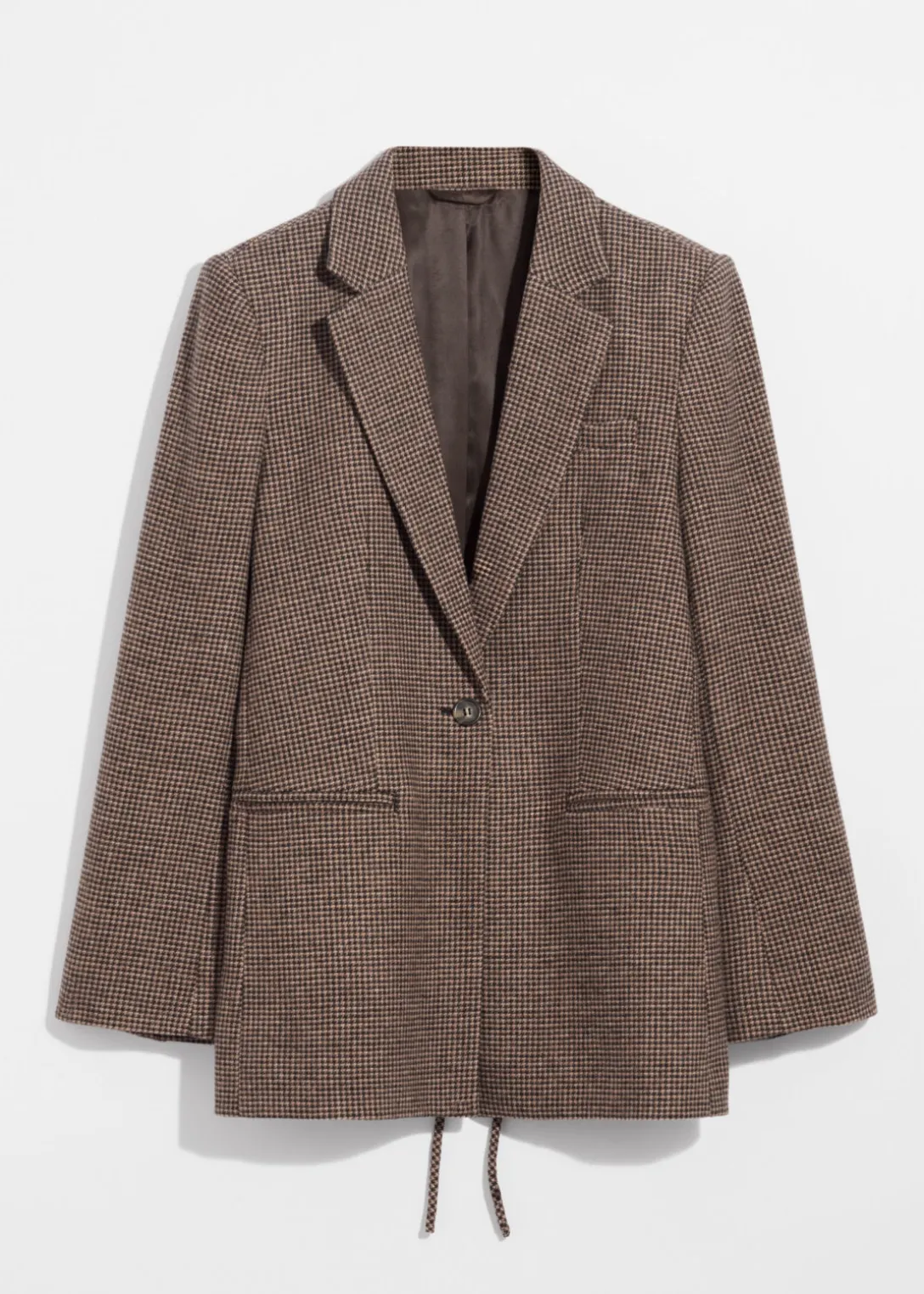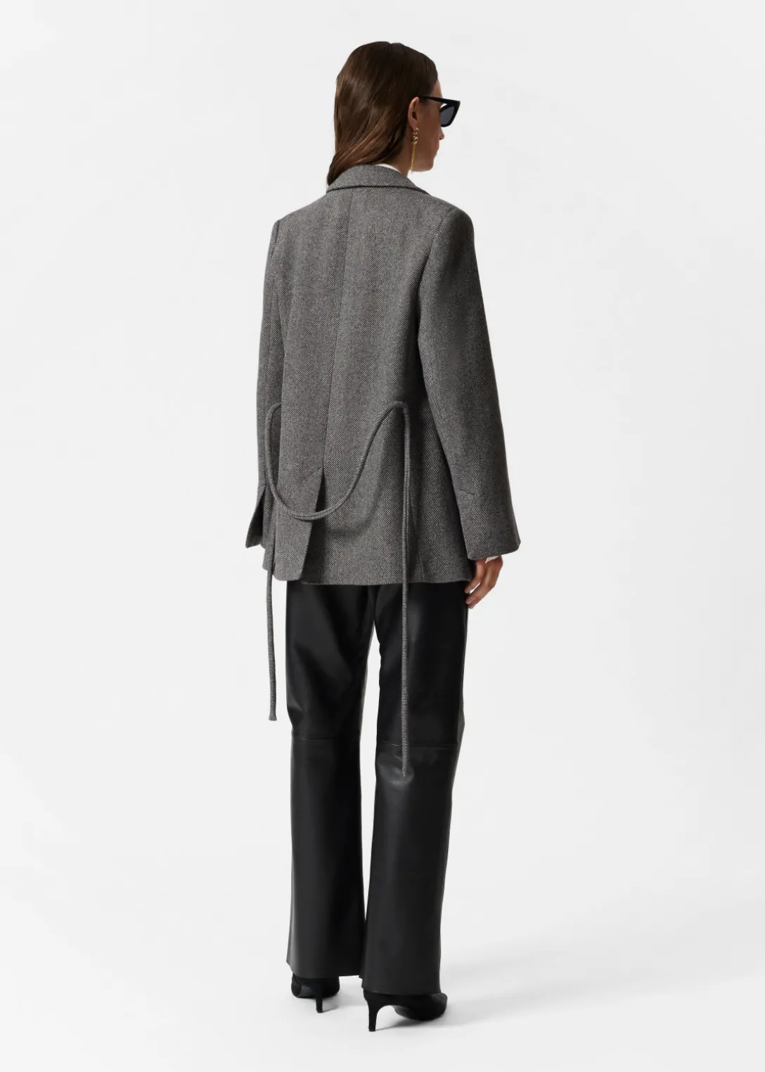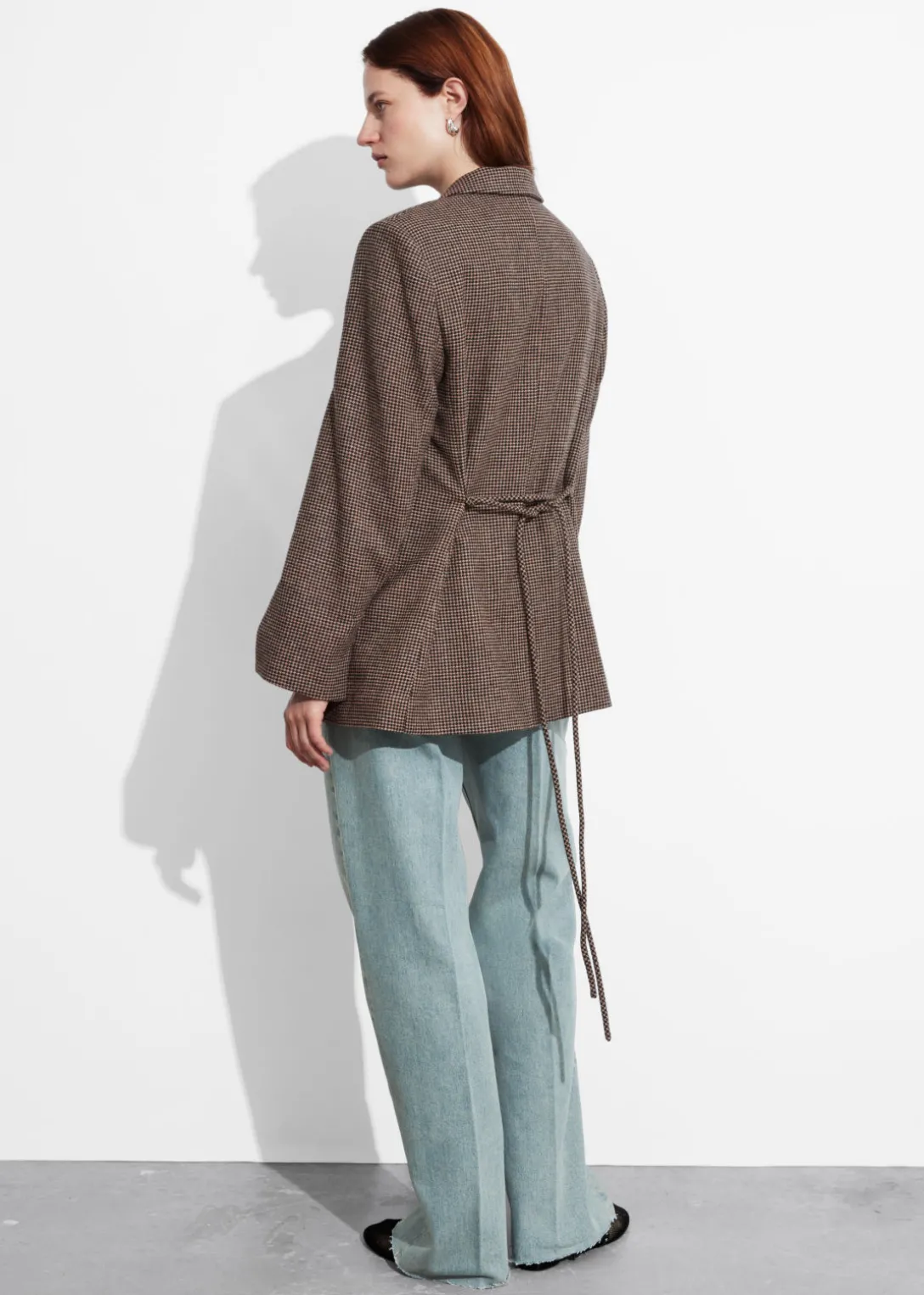 Blazer en laine mélangée à boutonnage simple. Doté d’une ceinture fine.