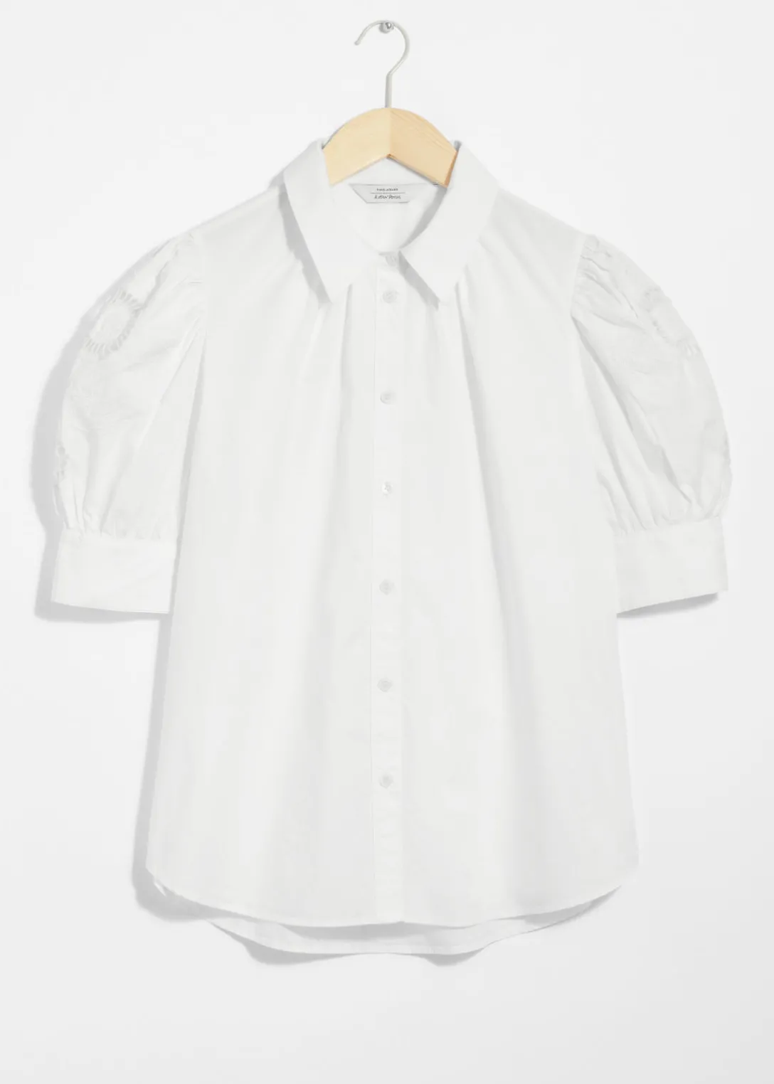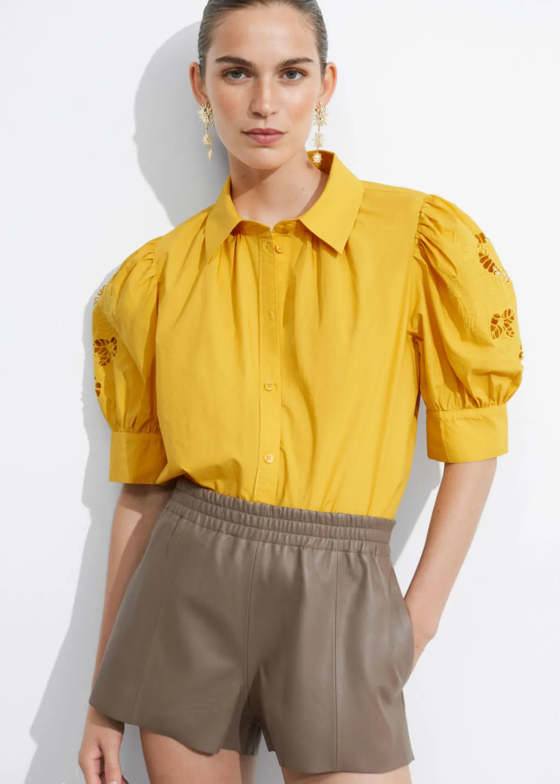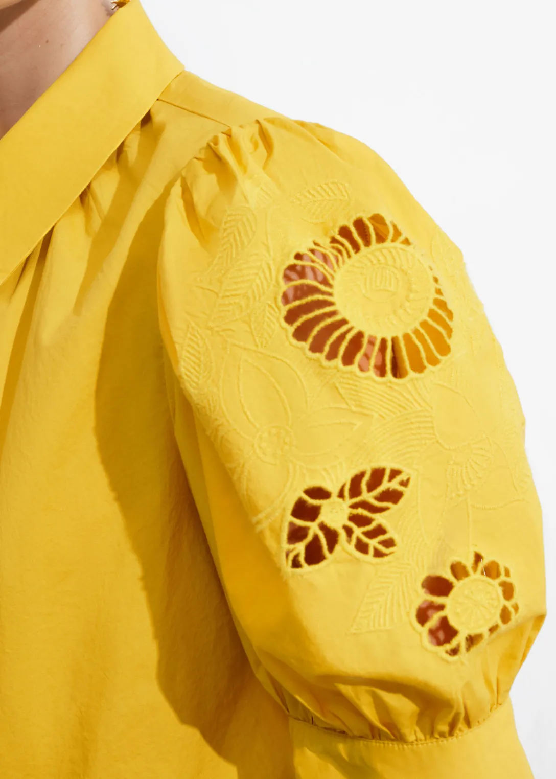 Blouse avec des manches ballon ornées de broderie florale à mailles ouvertes.