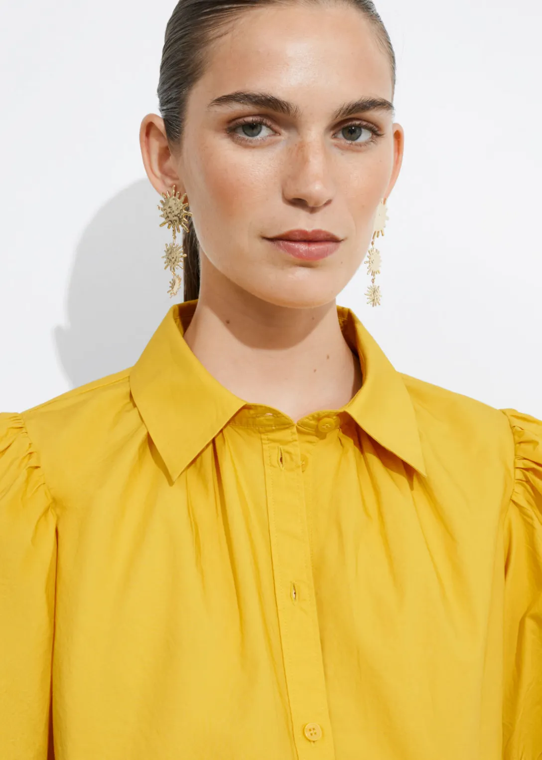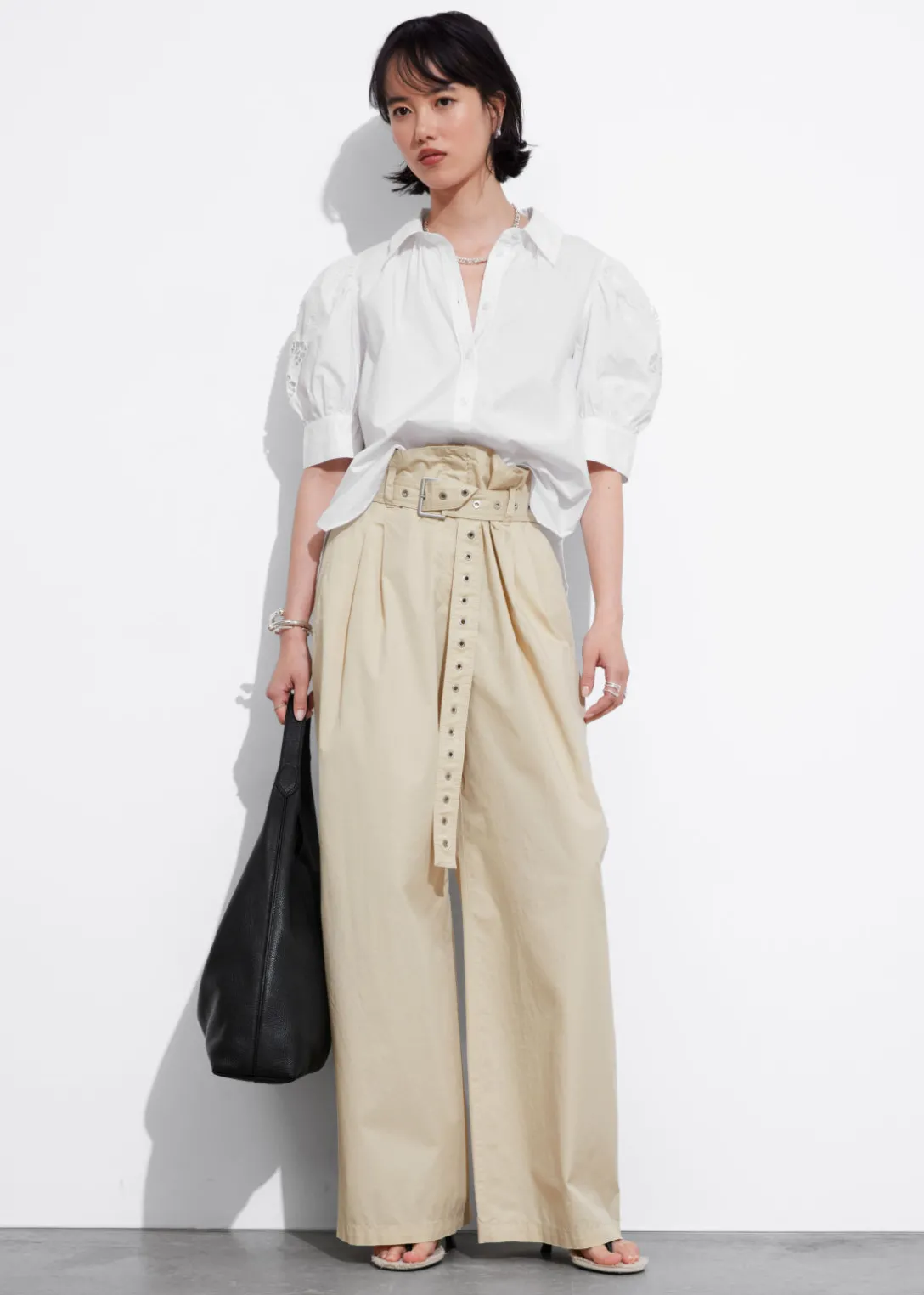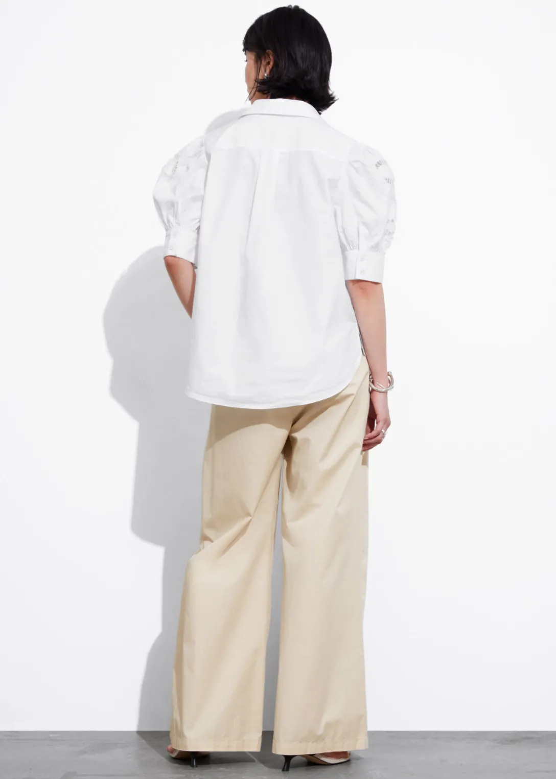 Blouse avec des manches ballon ornées de broderie florale à mailles ouvertes.
