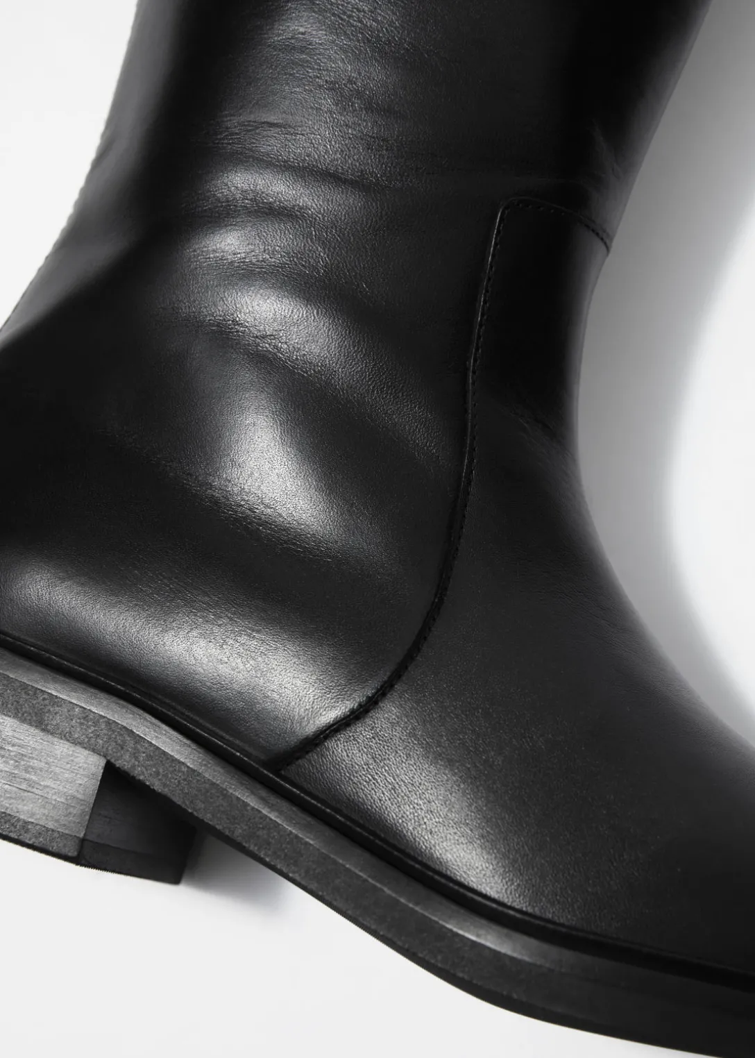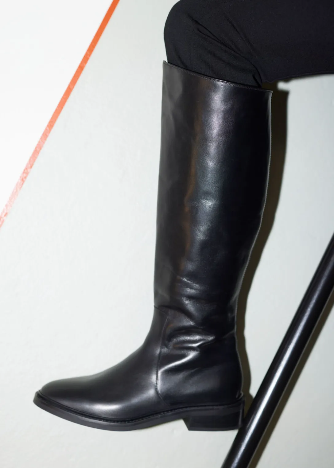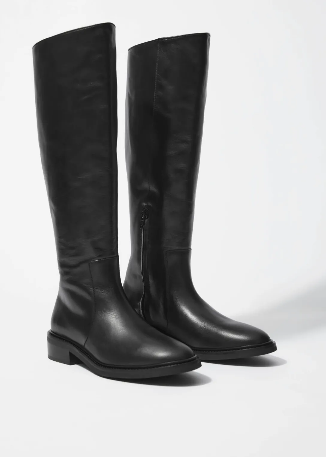 Ces bottes s’inspirent des modèles classiques d’équitation. Elles ont été fabriquées en cuir souple au Portugal. Le talon de 30 mm offre une élévation subtile tout en étant suffisamment confortable pour les porter toute la journée. Elles reposent sur des semelles en caoutchouc et sont dotées d’une fermeture éclair dissimulée.