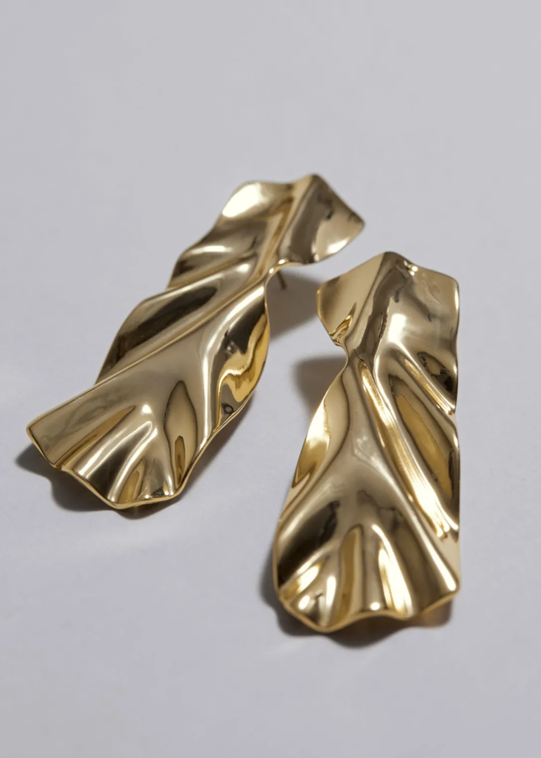 Boucles d’oreilles d’exception conçues pour créer une illusion de métal liquide drapé. Dotées de fermoirs papillon.