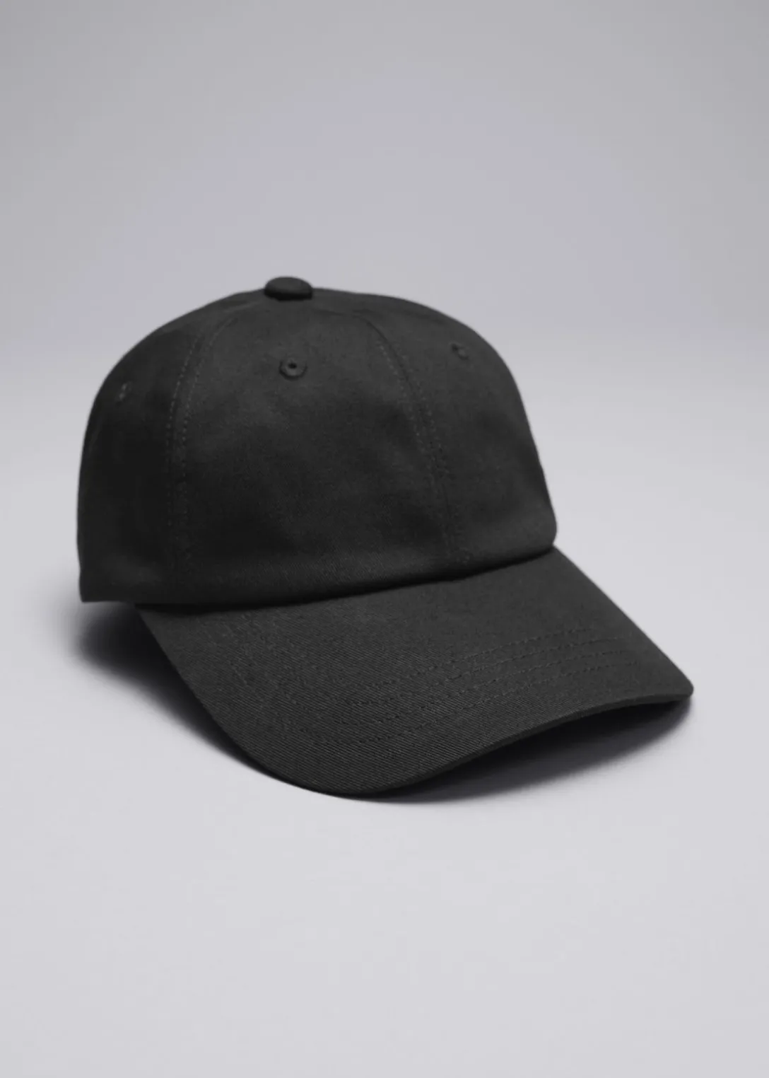 Casquette de baseball classique, confectionnée en coton et dotée d’une visière incurvée. Boucle coulissante à l’arrière et détails surpiqués
