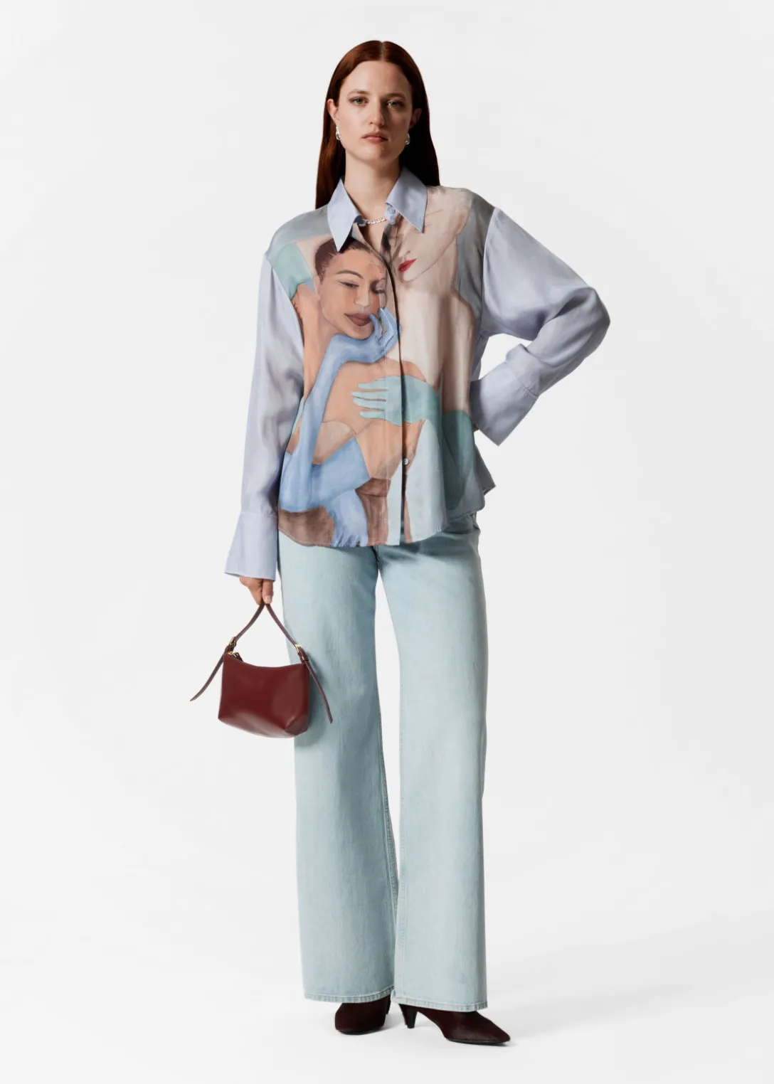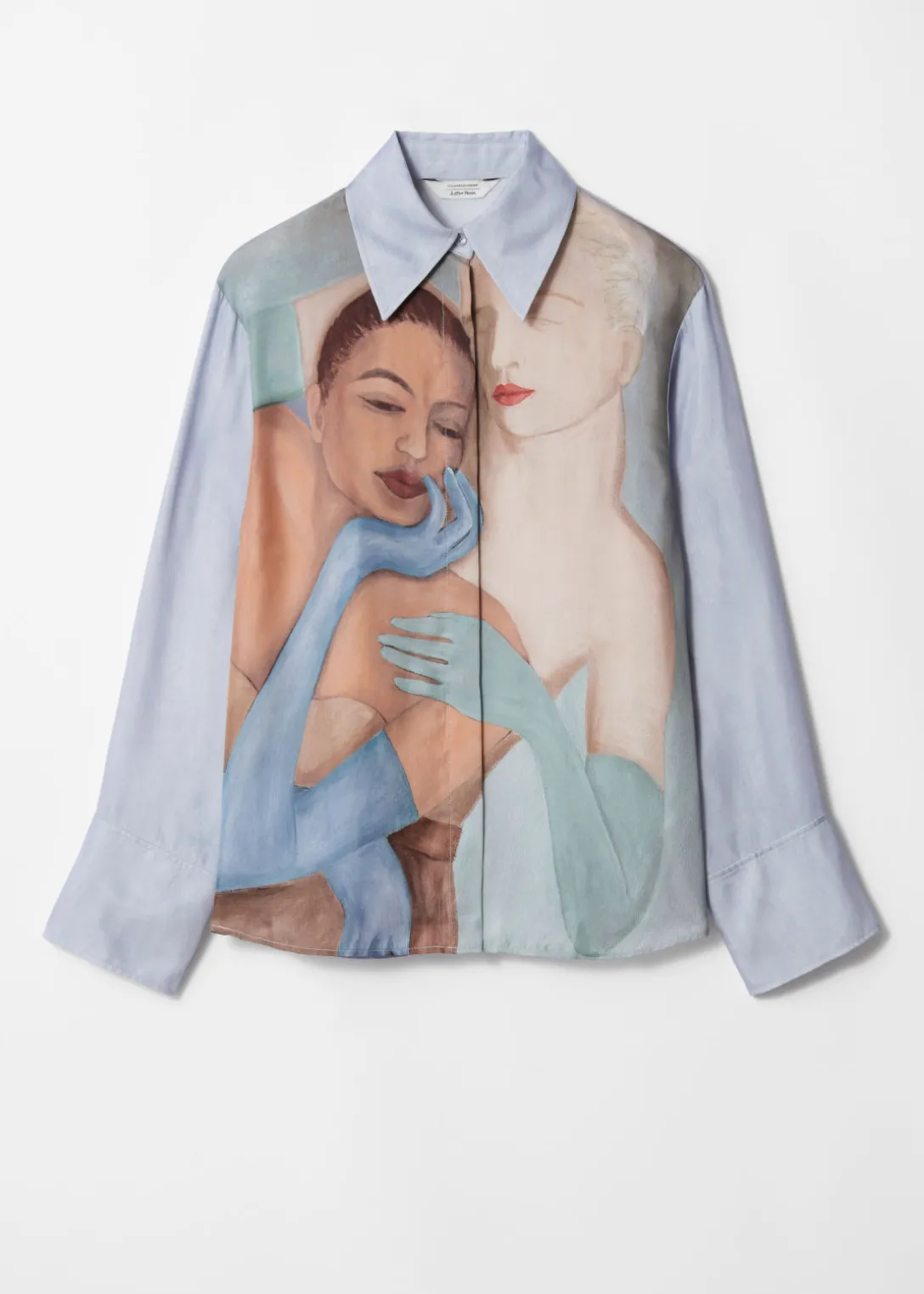 Chemise à manches longues définie par un imprimé artistique. Fermeture par boutons cachés.