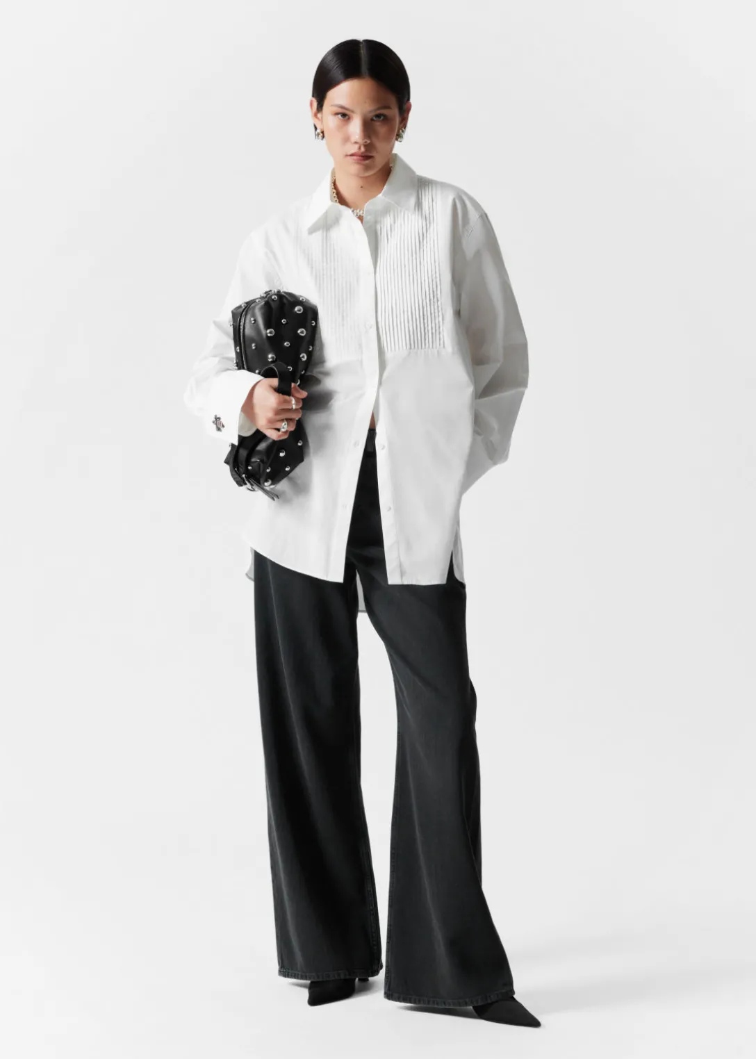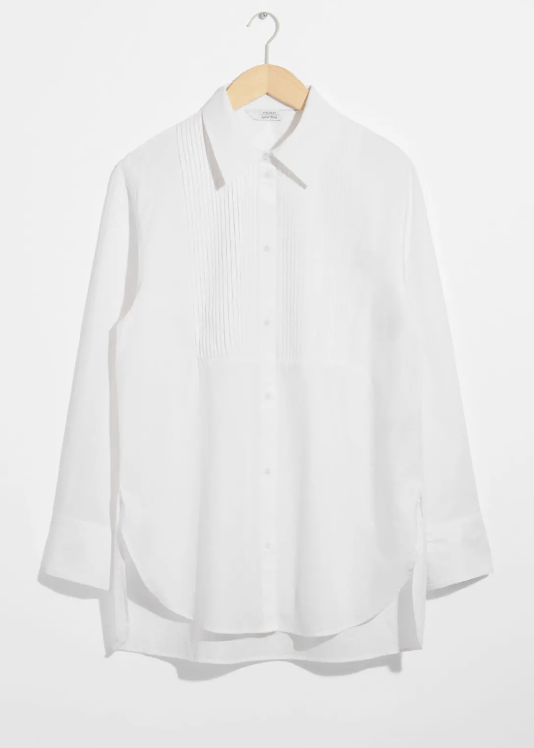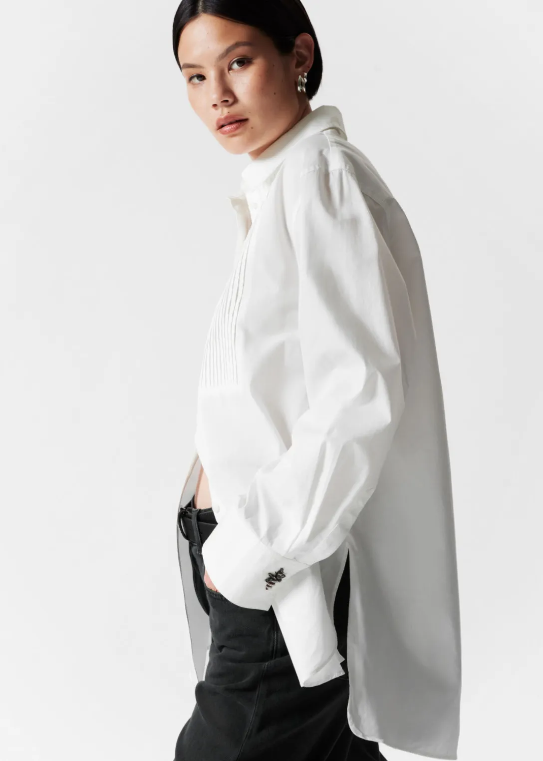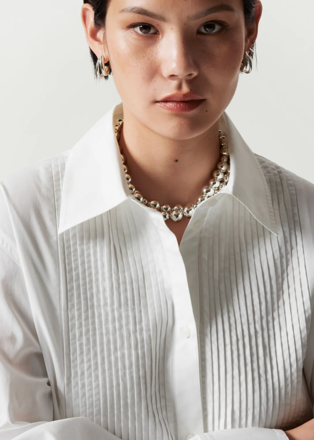 Chemise en coton avec des détails plissés sur la poitrine. Dotée d’un empiècement légèrement plus long à l’arrière.