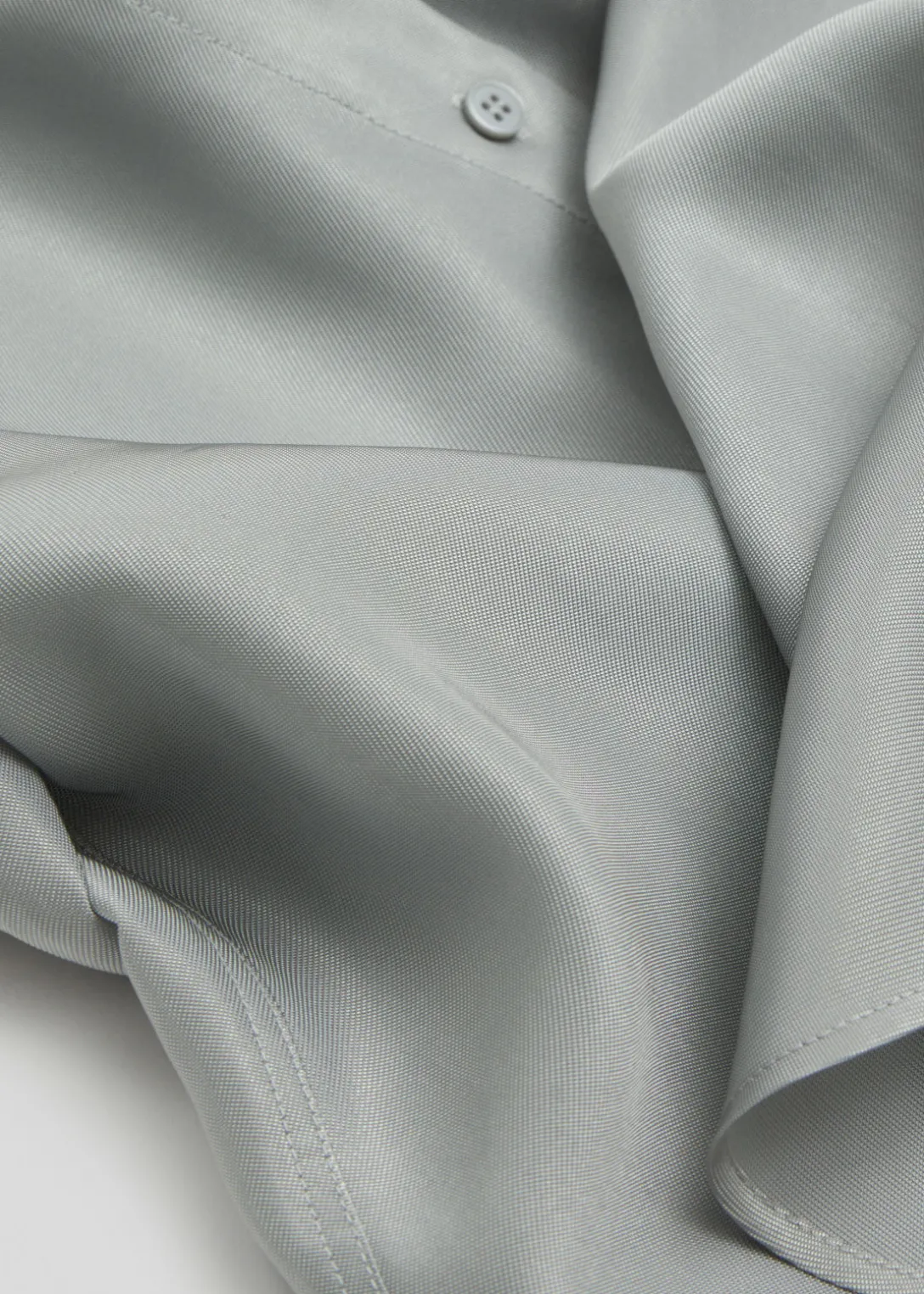 Chemise transparente à coupe regular en tissu tissé doux, avec un col rabattu classique, une patte boutonnée et un ourlet arrondi.