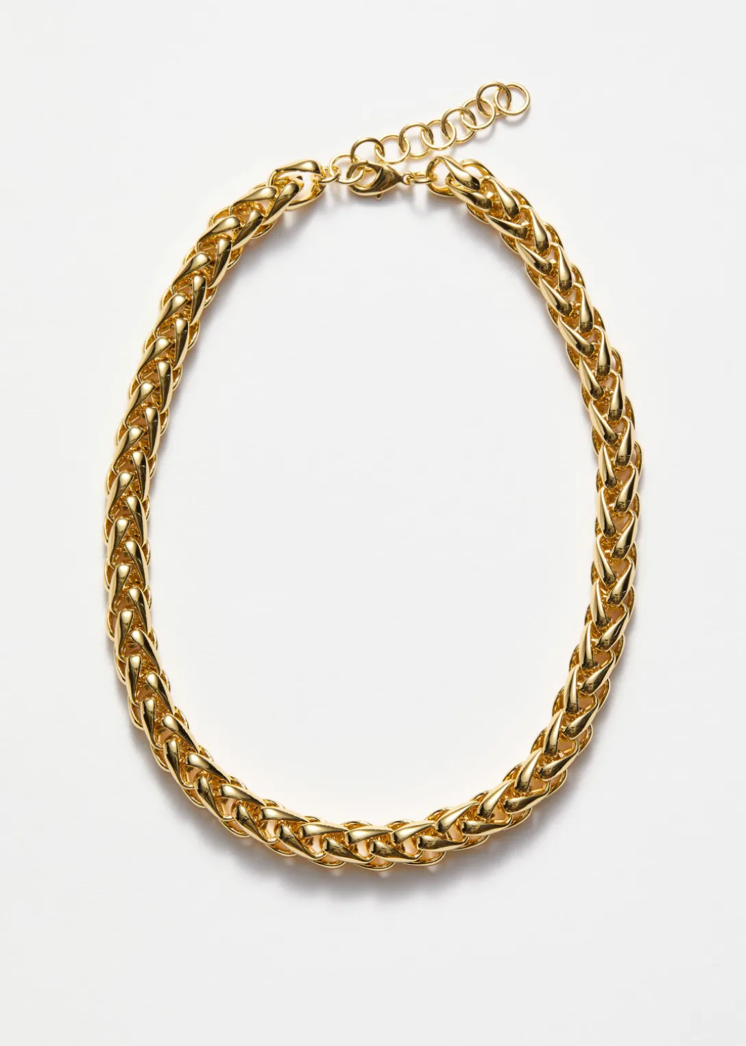 Ce collier épais en laiton poli est une option contemporaine pour remplacer votre chaîne quotidienne. Sa longueur plus courte est idéale pour le superposer.