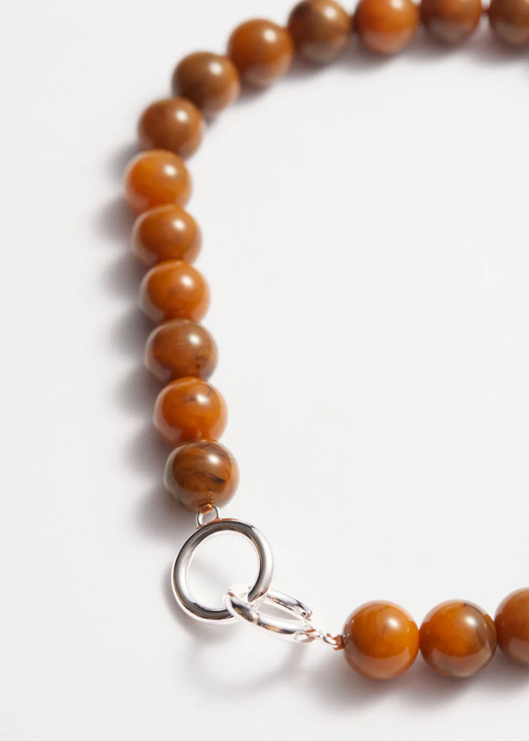 Collier court en perles de pierre avec un fermoir délicat à anneau en O.
