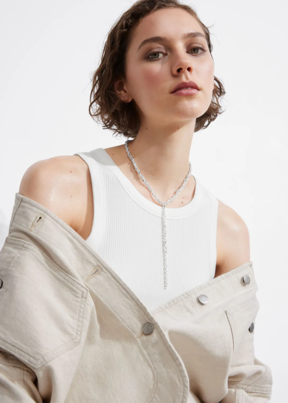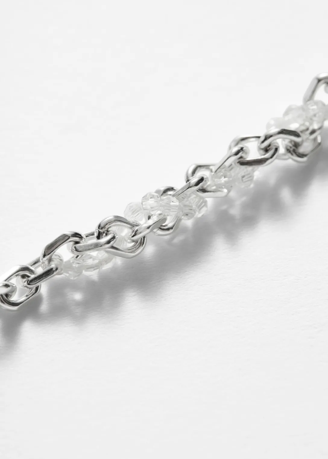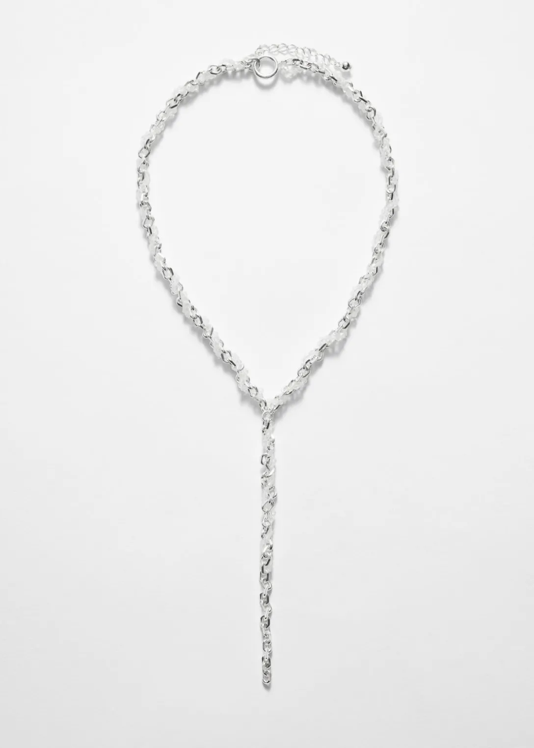 Ce collier est confectionné à partir de maillons délicats en laiton argenté. Orné de perles en verre brillant, il est doté d’une chaîne d’extension vous permettant de personnaliser la longueur.