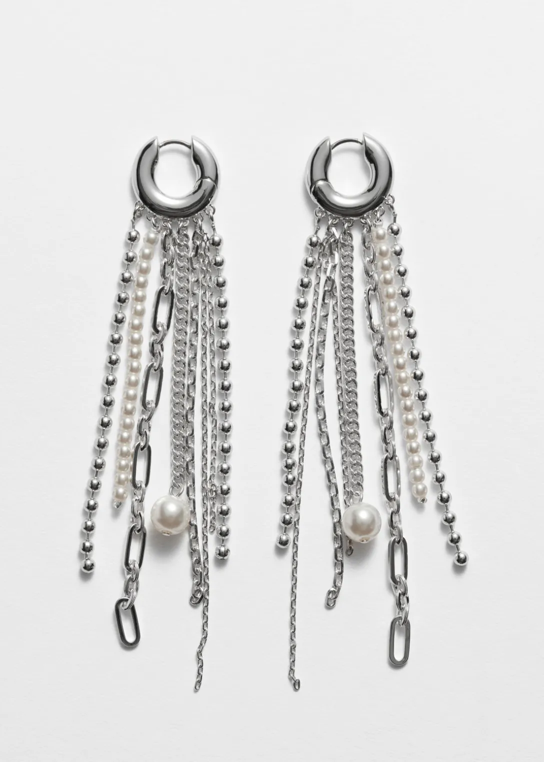 Ces jolies boucles d’oreilles sont une alternative accrocheuse aux créoles classiques. Confectionnées en laiton poli, elles sont ornées de perles brillantes pendantes et de cristaux scintillants. Associez-les à vos styles plus raffinés.