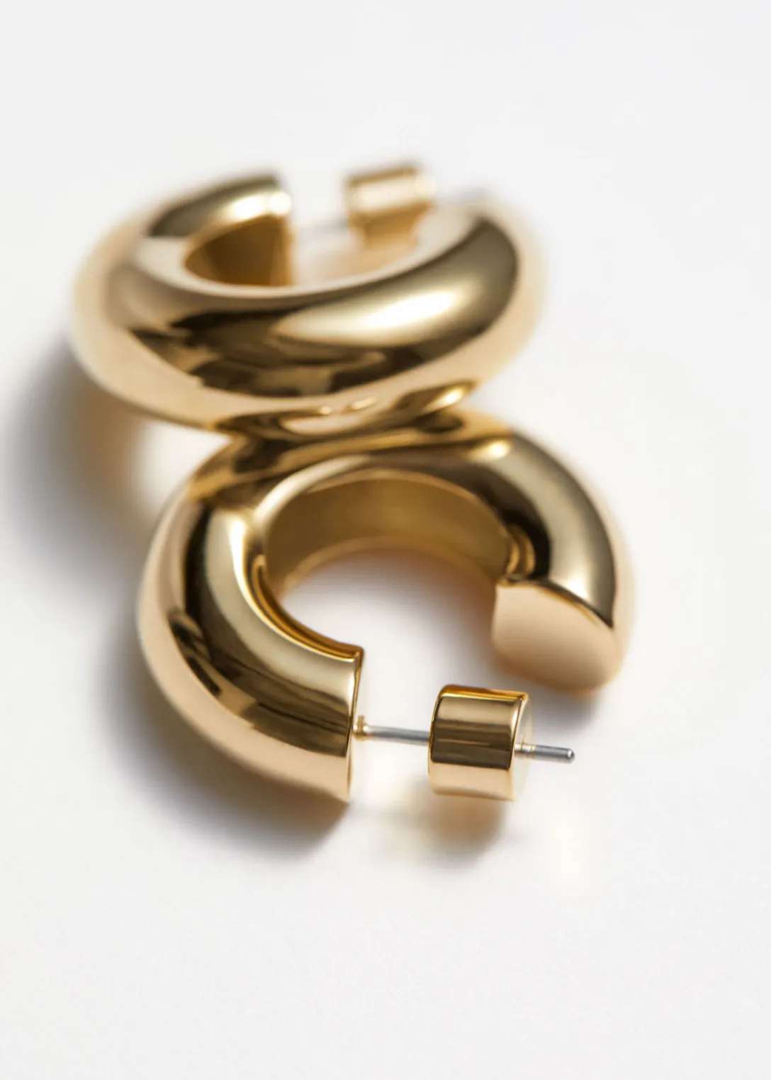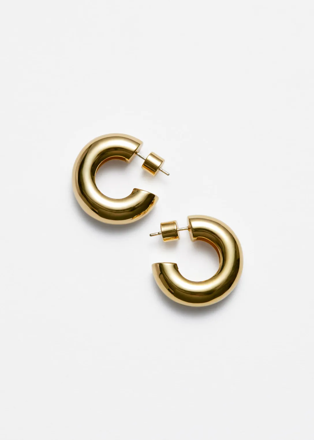 Ces créoles en laiton doré plaquent contre vos lobes pour un look discret mettant en valeur votre visage. Portez-les seules ou avec d’autres boucles d’oreilles de tailles différentes.
