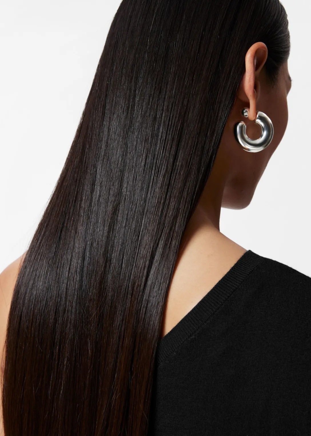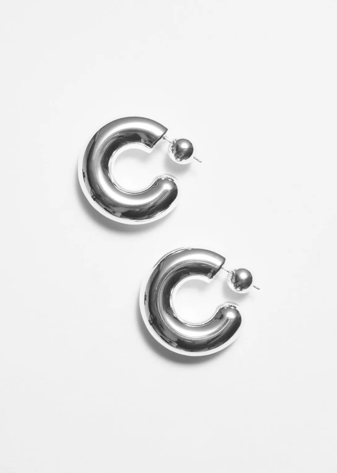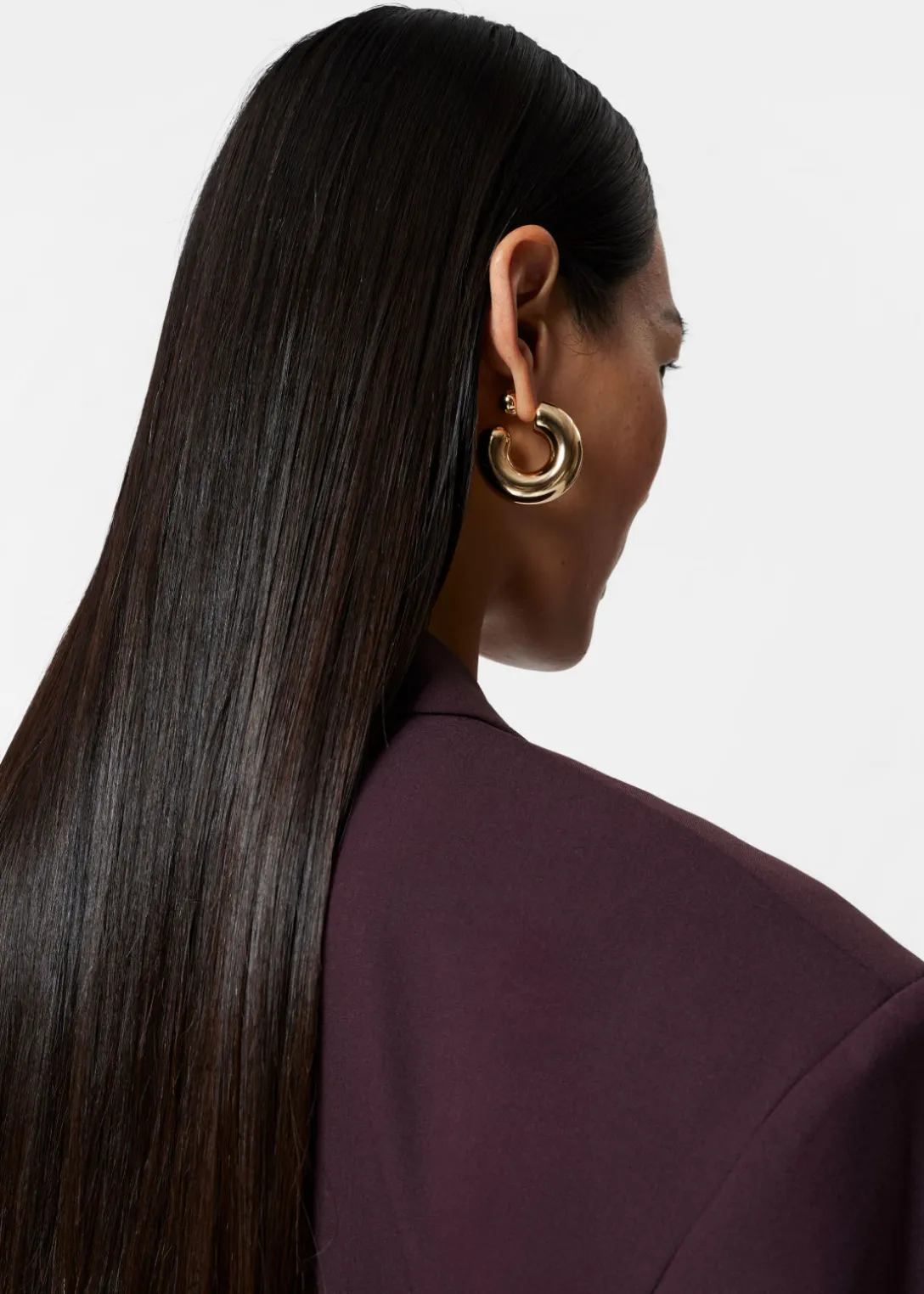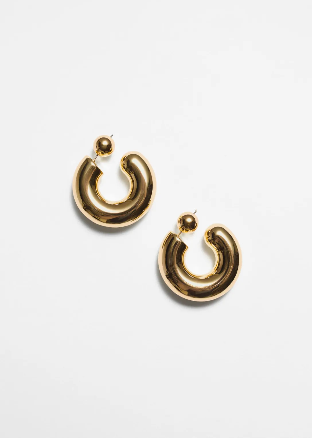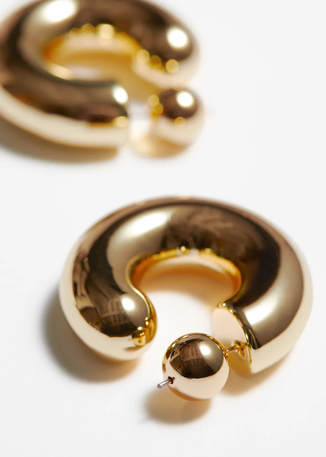 Ces boucles d’oreilles épaisses sont confectionnées en laiton plaqué poli pour une grande brillance. Sculptées dans une forme incurvée avec des bords arrondis, elles iront avec n’importe quelle tenue.