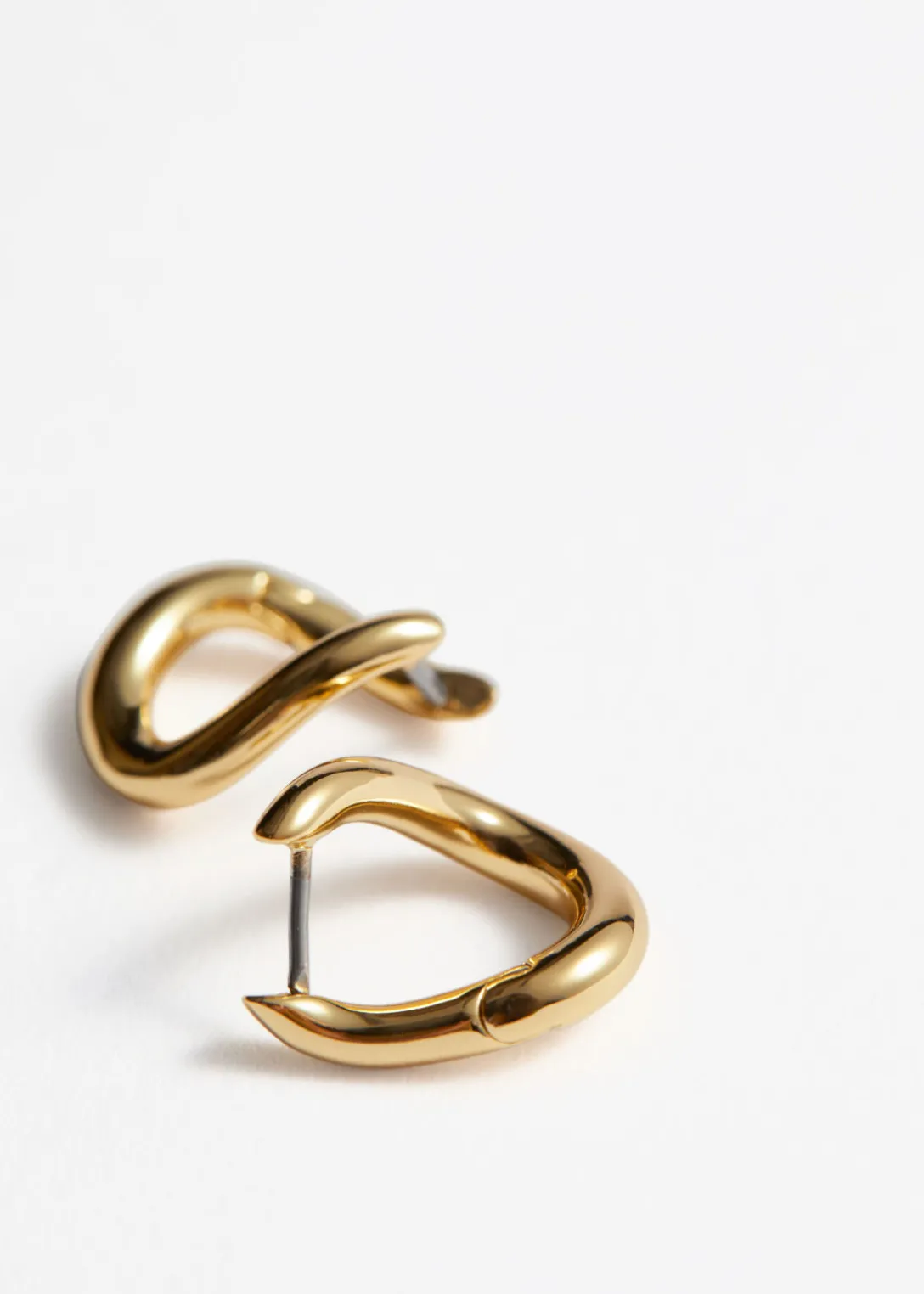 Créoles torsadées dotées de fermoirs à charnière dissimulés. Bijou idéal pour tous les jours, mais suffisamment imposant pour être remarqué.