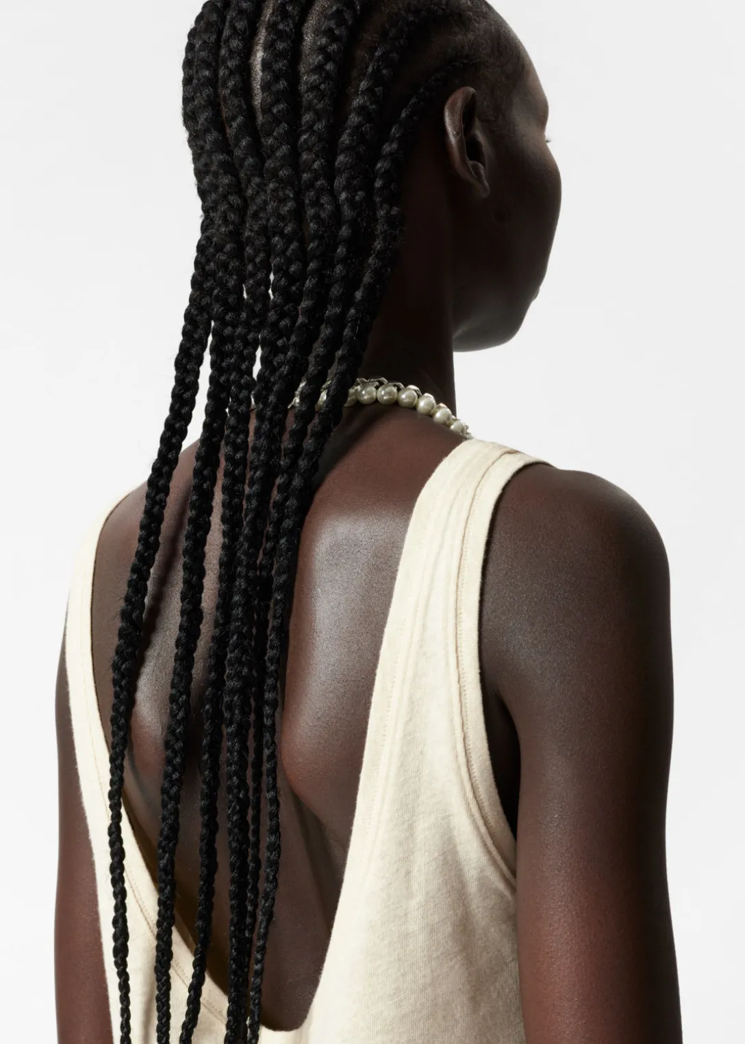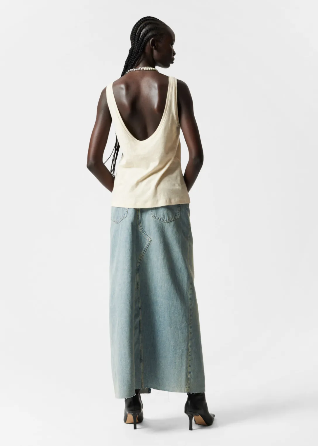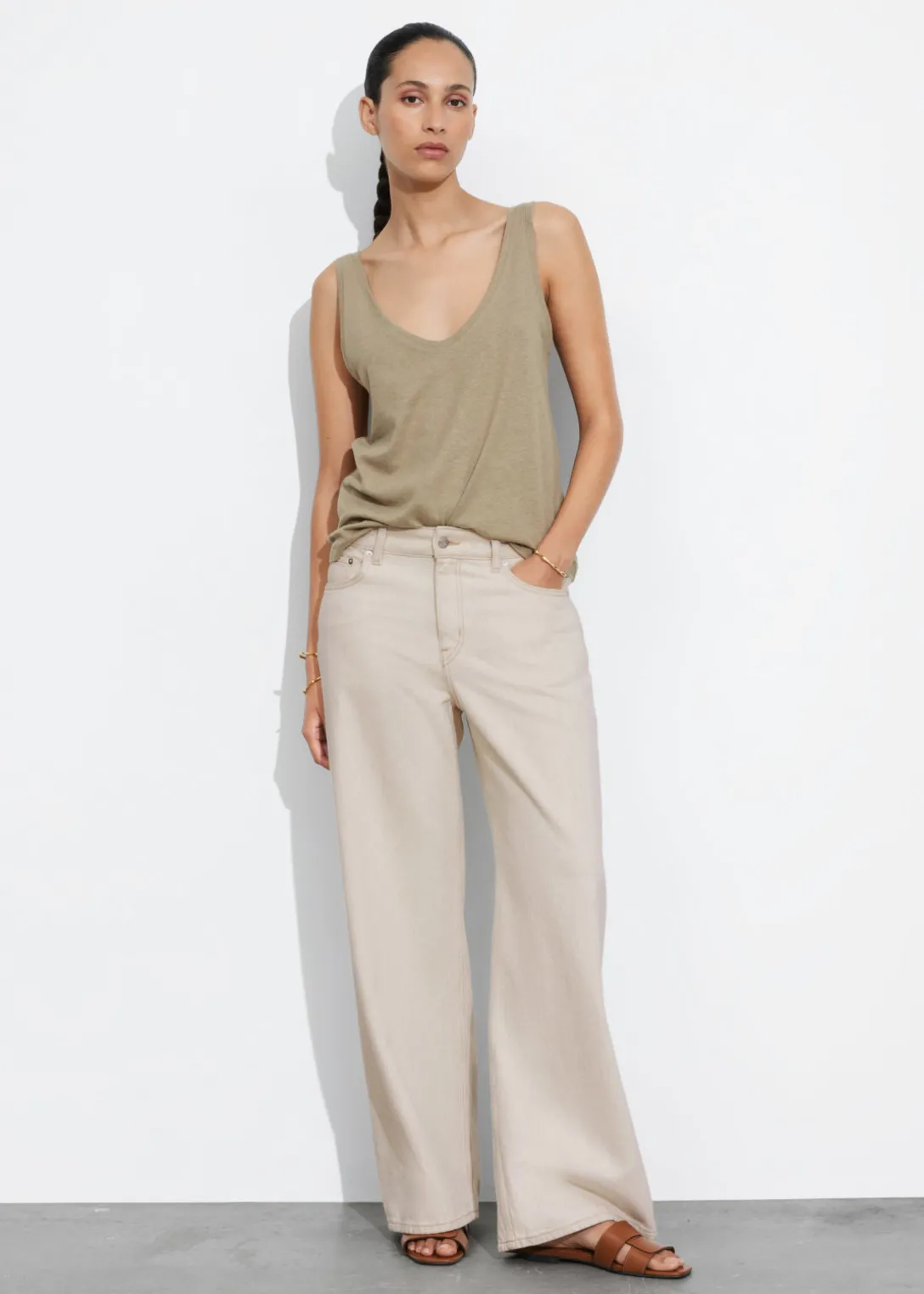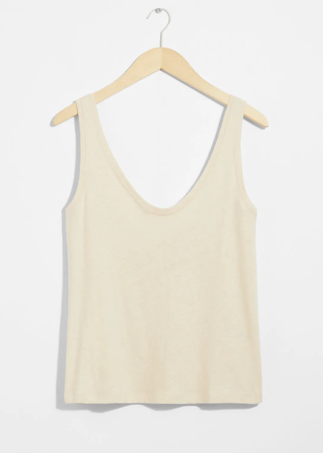 Débardeur confectionné à partir de lin et de coton. Doté d’une encolure en V.