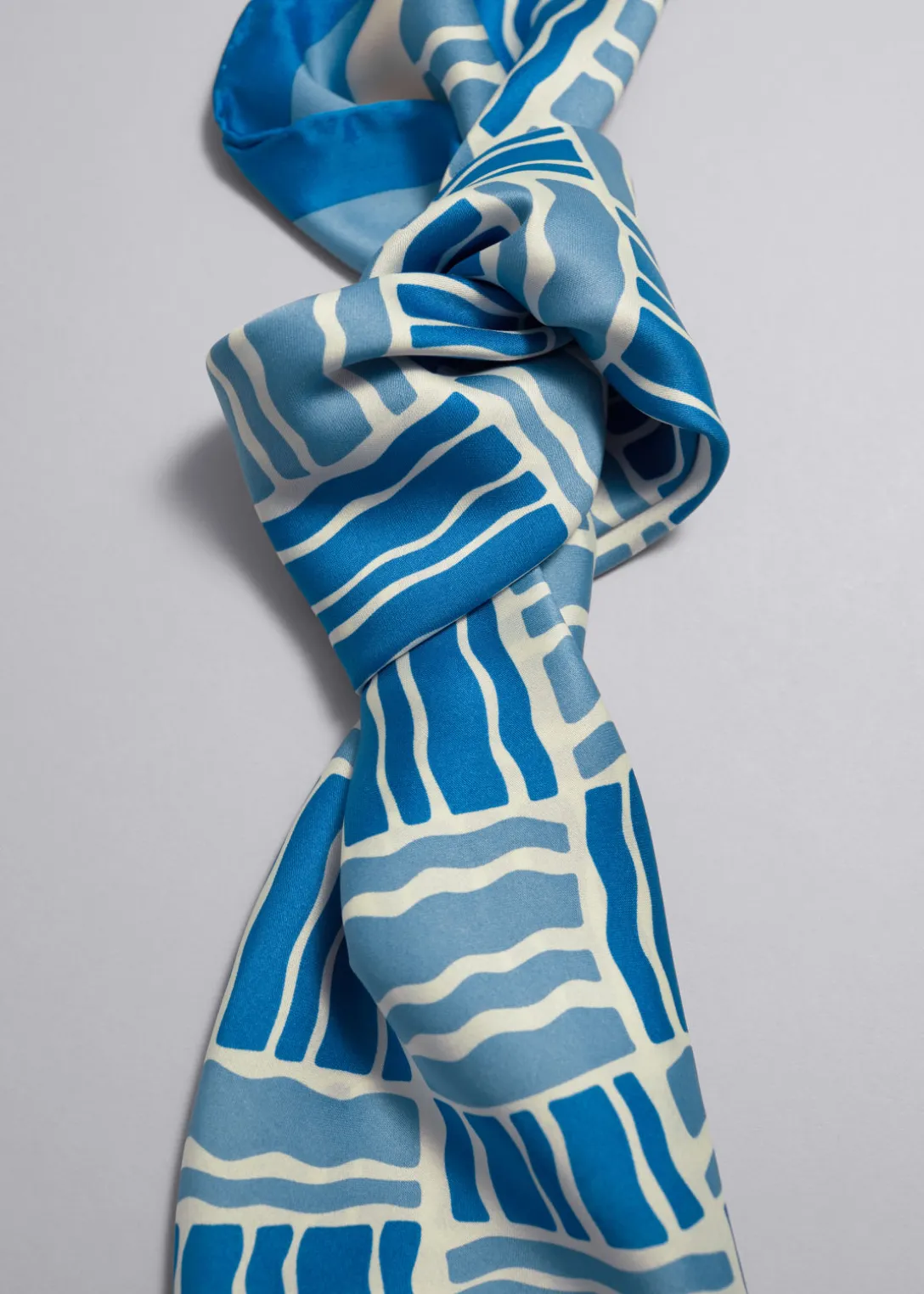 Foulard carré léger à la finition satinée avec un motif graphique.