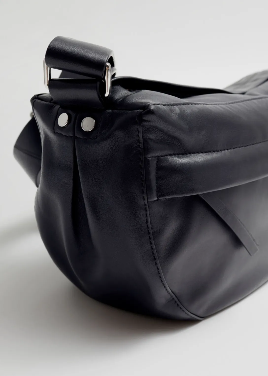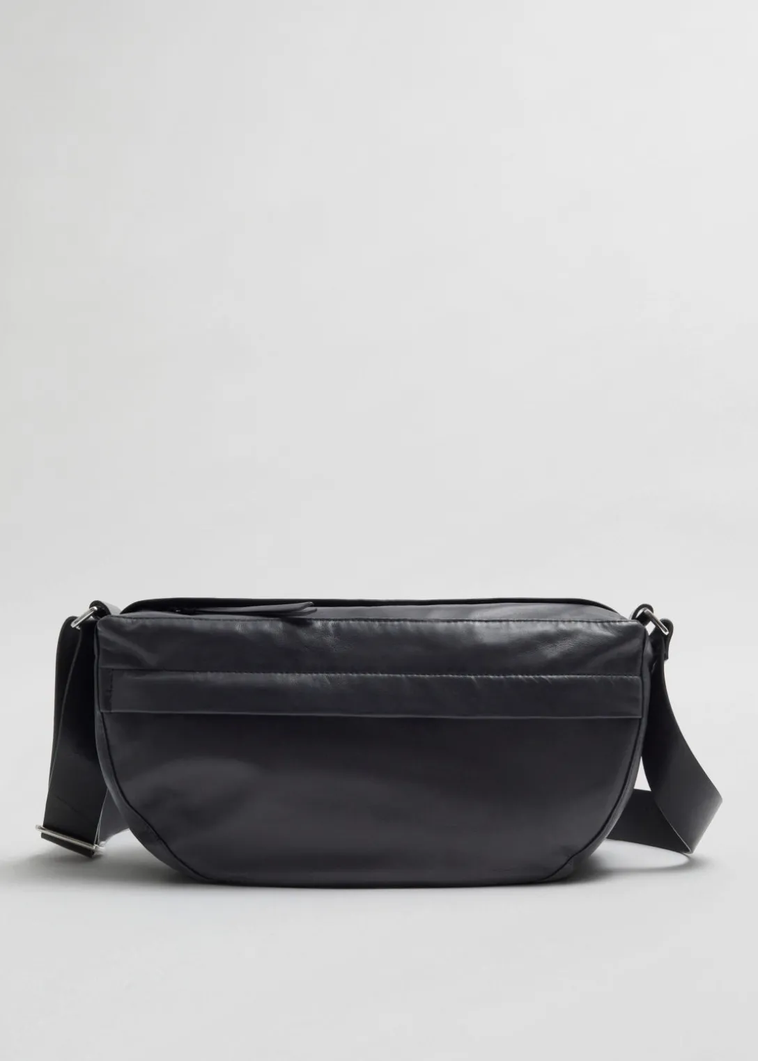 Sac porté épaule incurvé en cuir souple, de grand taille, avec compartiment extérieur zippé. Fermeture éclair et bandoulière ajustable.