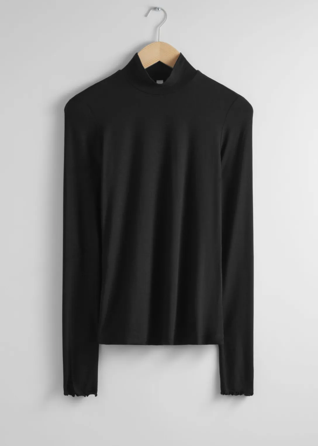 Haut à col montant, avec des poignets ondulés.
