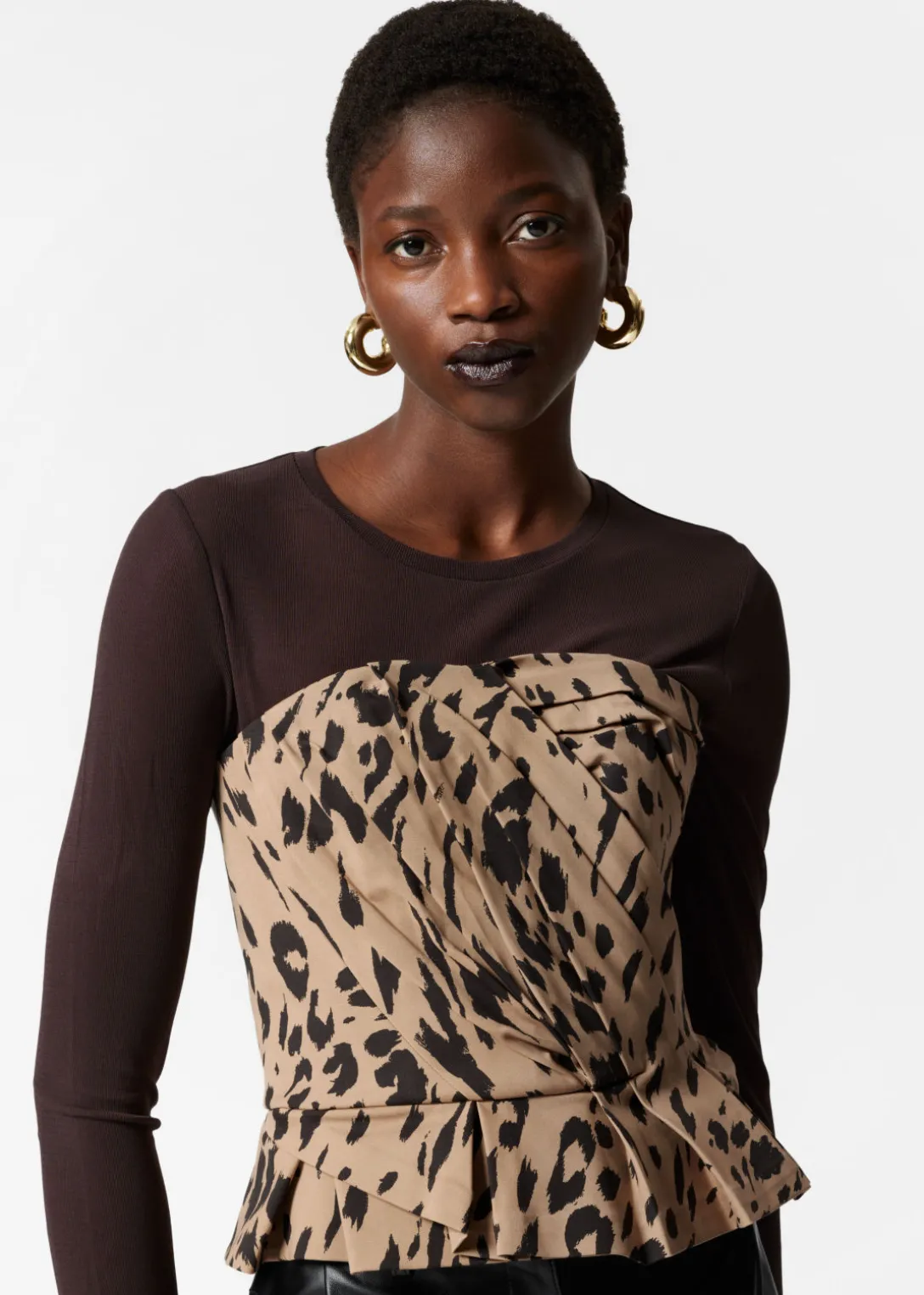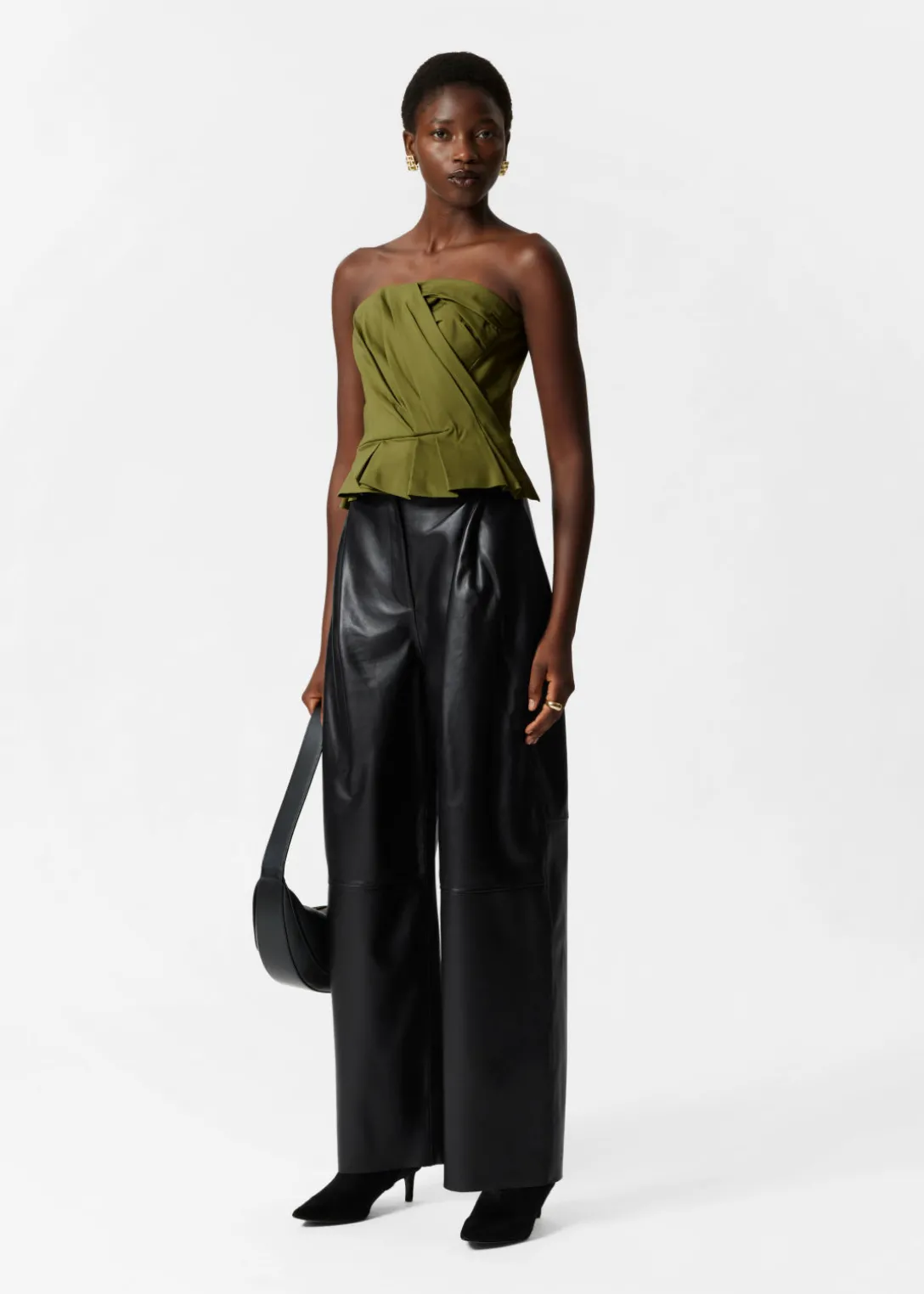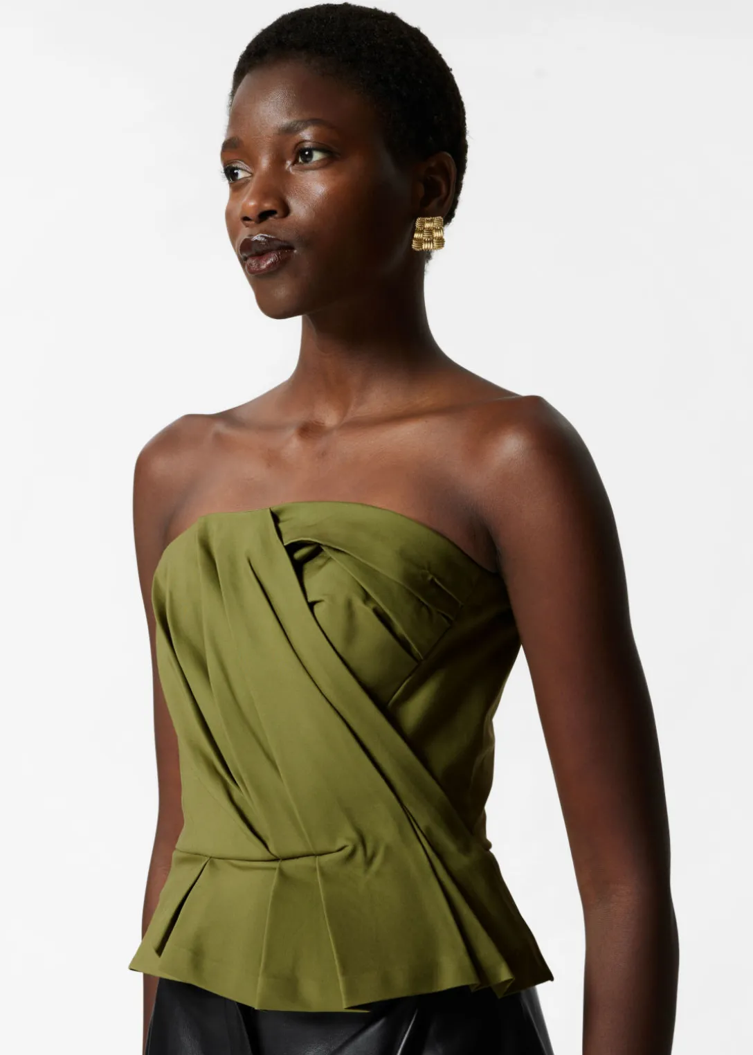 Haut bustier avec une finition drapée créant un ourlet asymétrique.