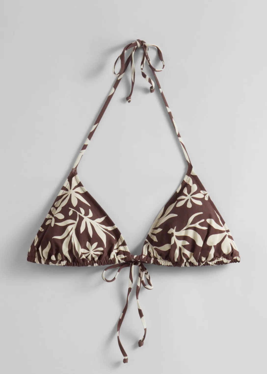 Haut de bikini triangle, orné d’un nœud à l’avant et au cou. Doté de bonnets amovibles.