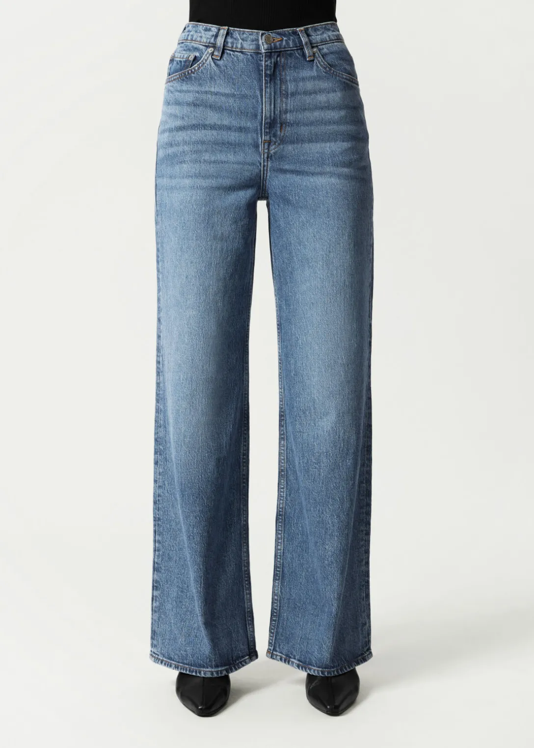 Incontournable de votre garde-robe qui va avec tous les styles ou humeurs, ce modèle à 5 poches présente une taille haute et une coupe large.
