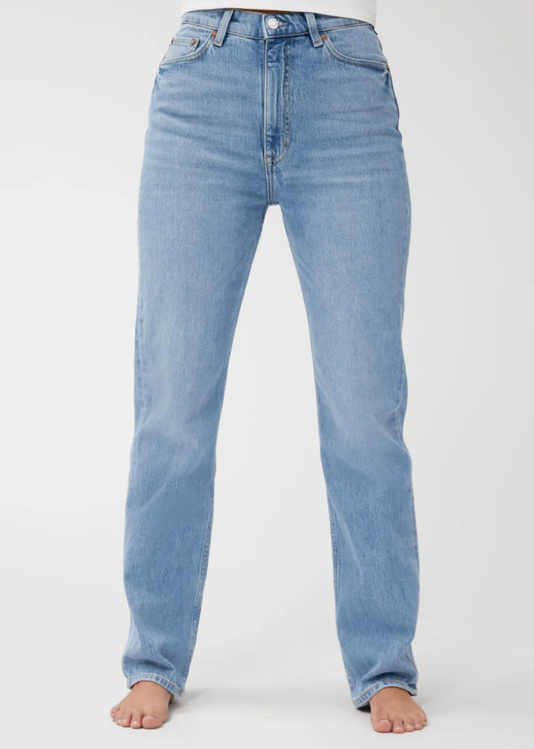 Jean à 5 poches doté d’une taille haute et de jambes étroites sur toute la longueur.