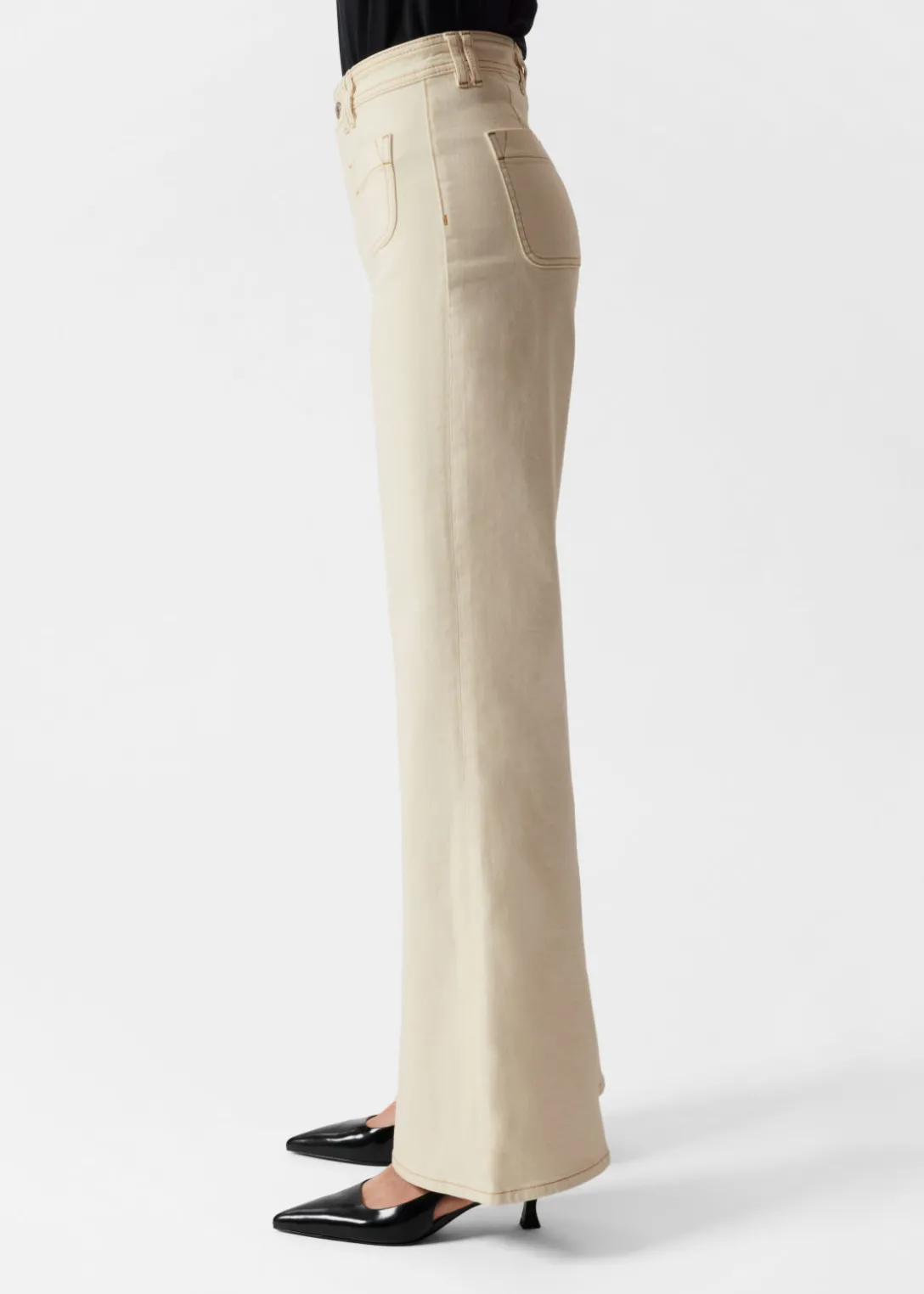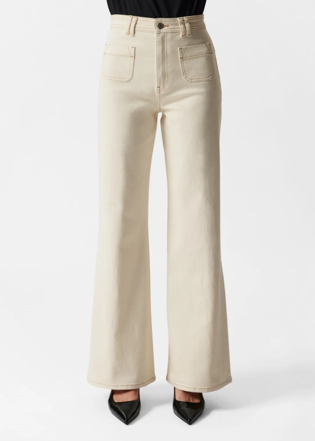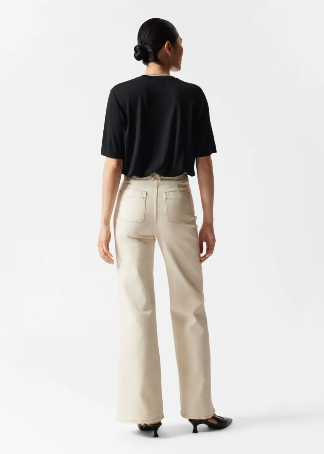 Jean bootcut taille haute détaillé avec poches plaquées à l’avant et à l’arrière.