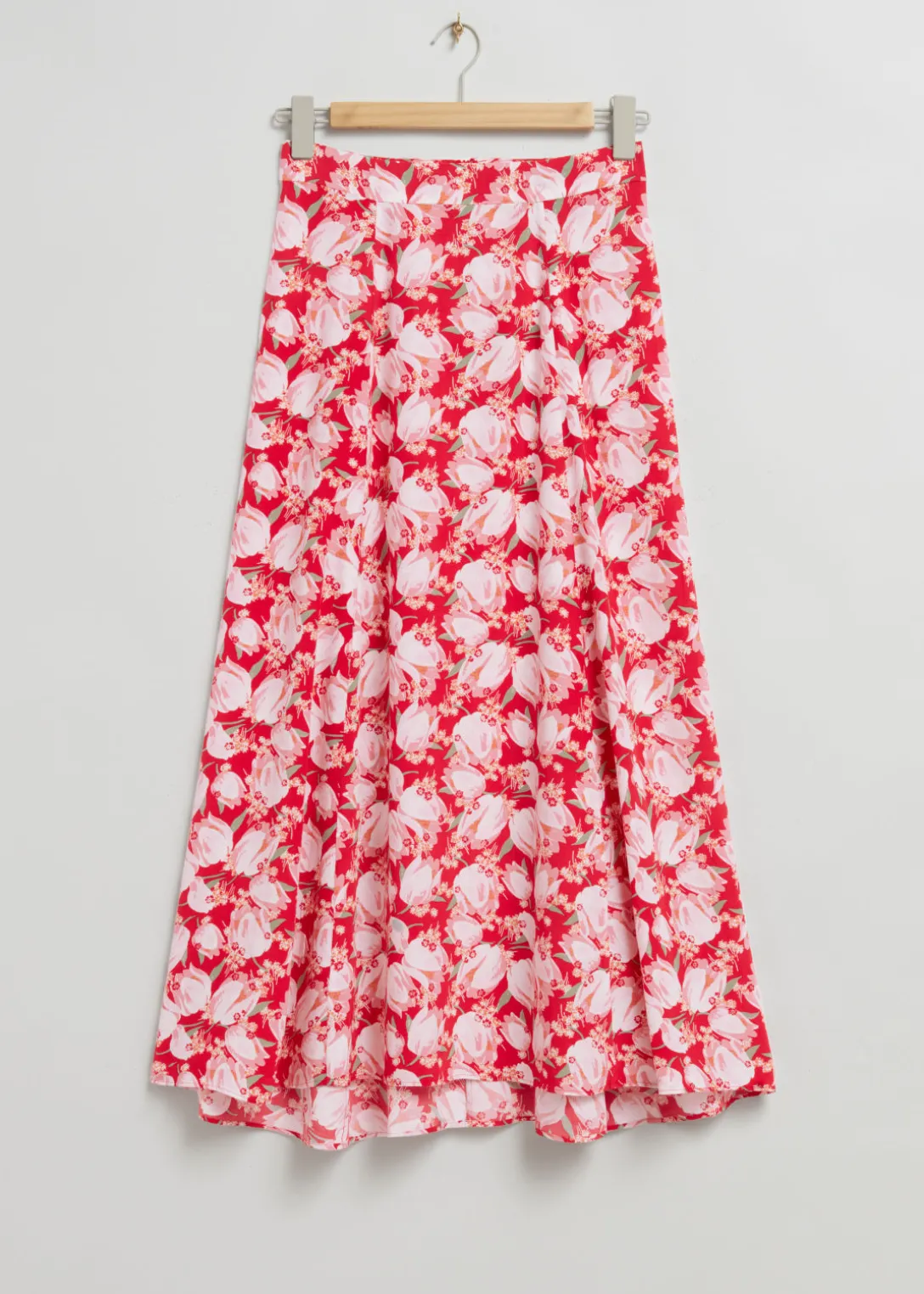 Jupe évasée taille haute à motif, confectionnée à partir d’un mélange de matières. Dotée d’une taille haute, d’une ceinture fine, d’une jupe évasée et froncée, arrivant jusqu’à la cheville, et d’une fermeture éclair invisible avec bouton au dos.