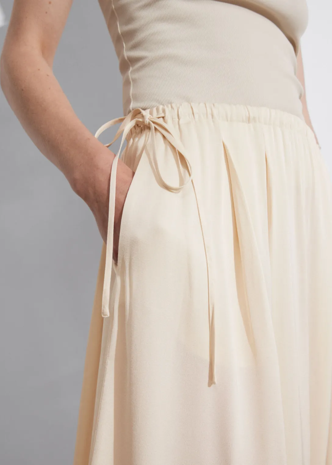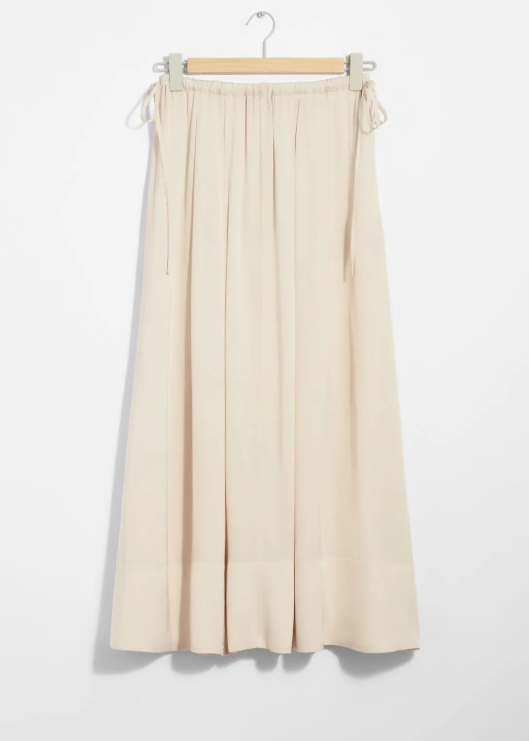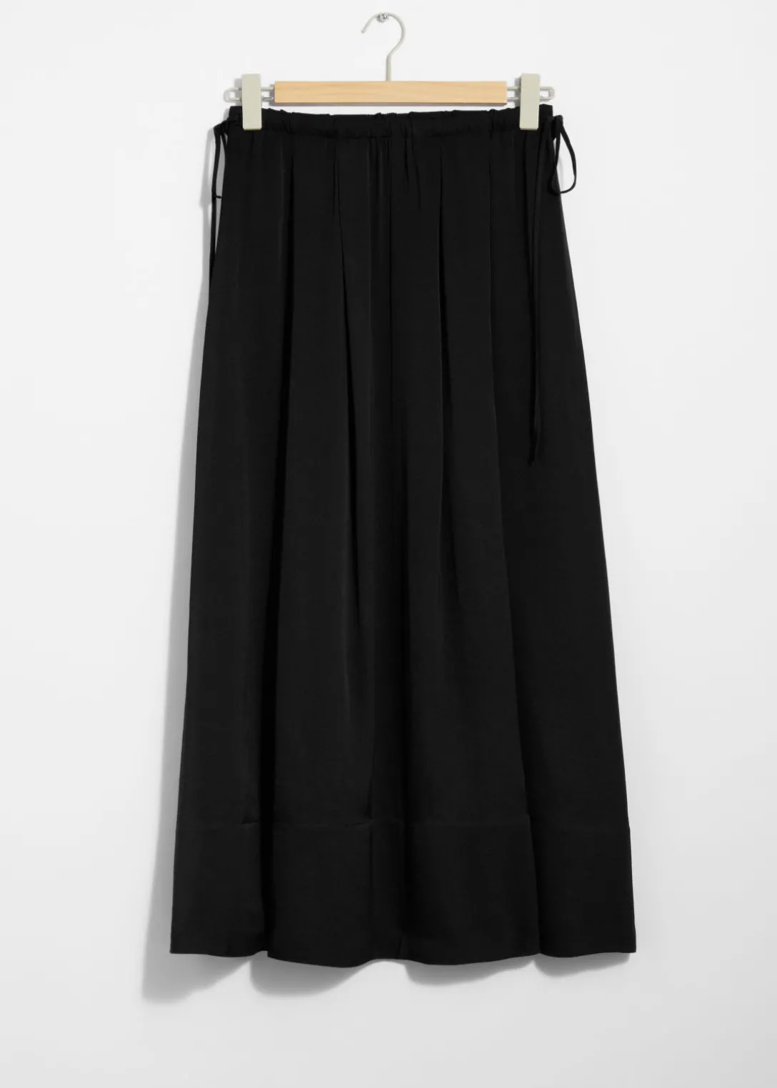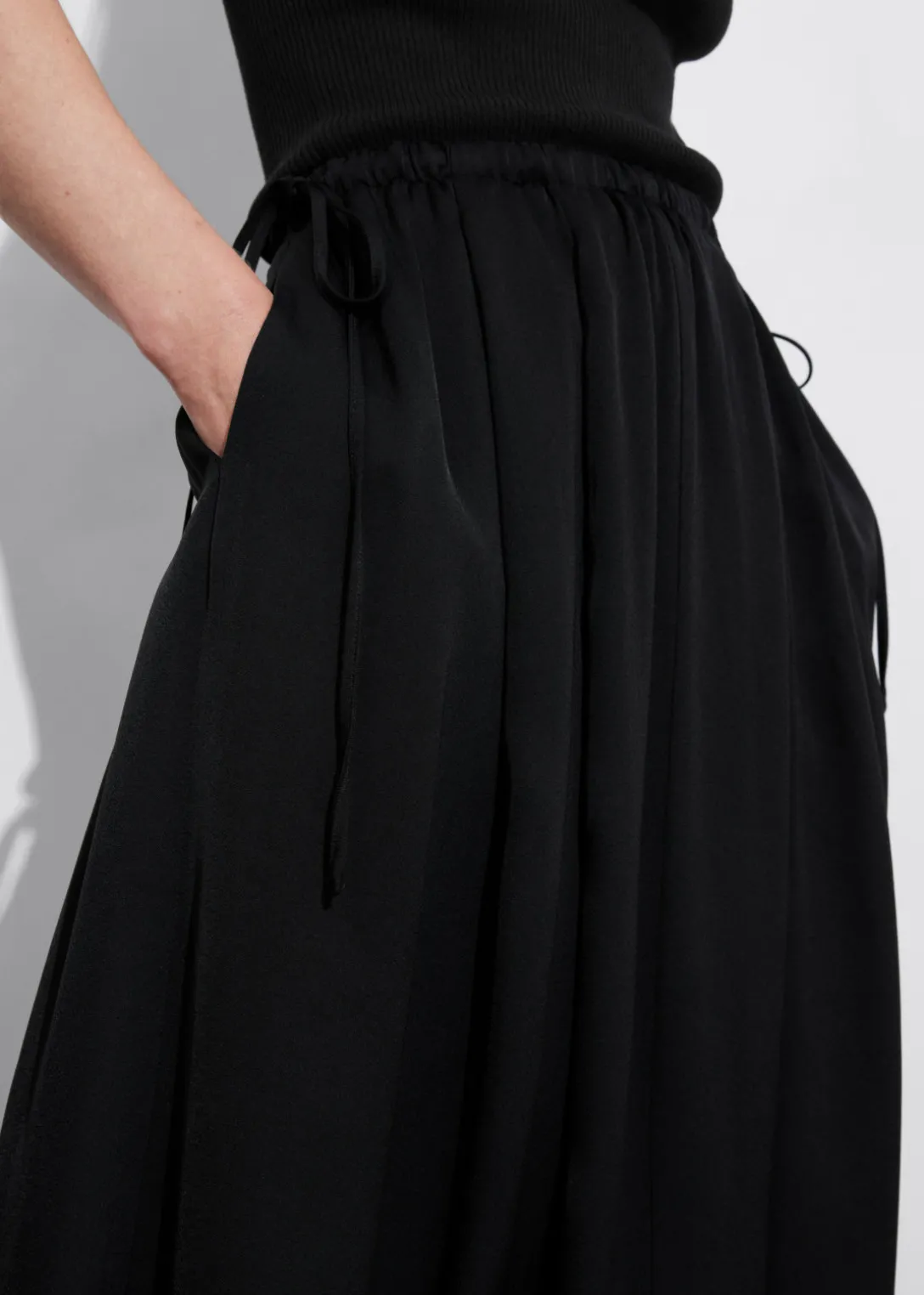 Jupe midi trapèze avec finition plissée et cordon de serrage à la taille.