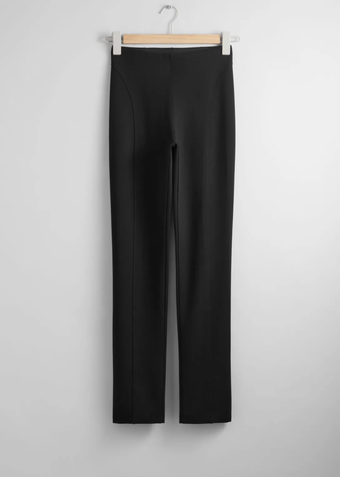Legging slim à coupe regular avec une taille élastique ainsi que des coutures verticales apparentes sur le devant.