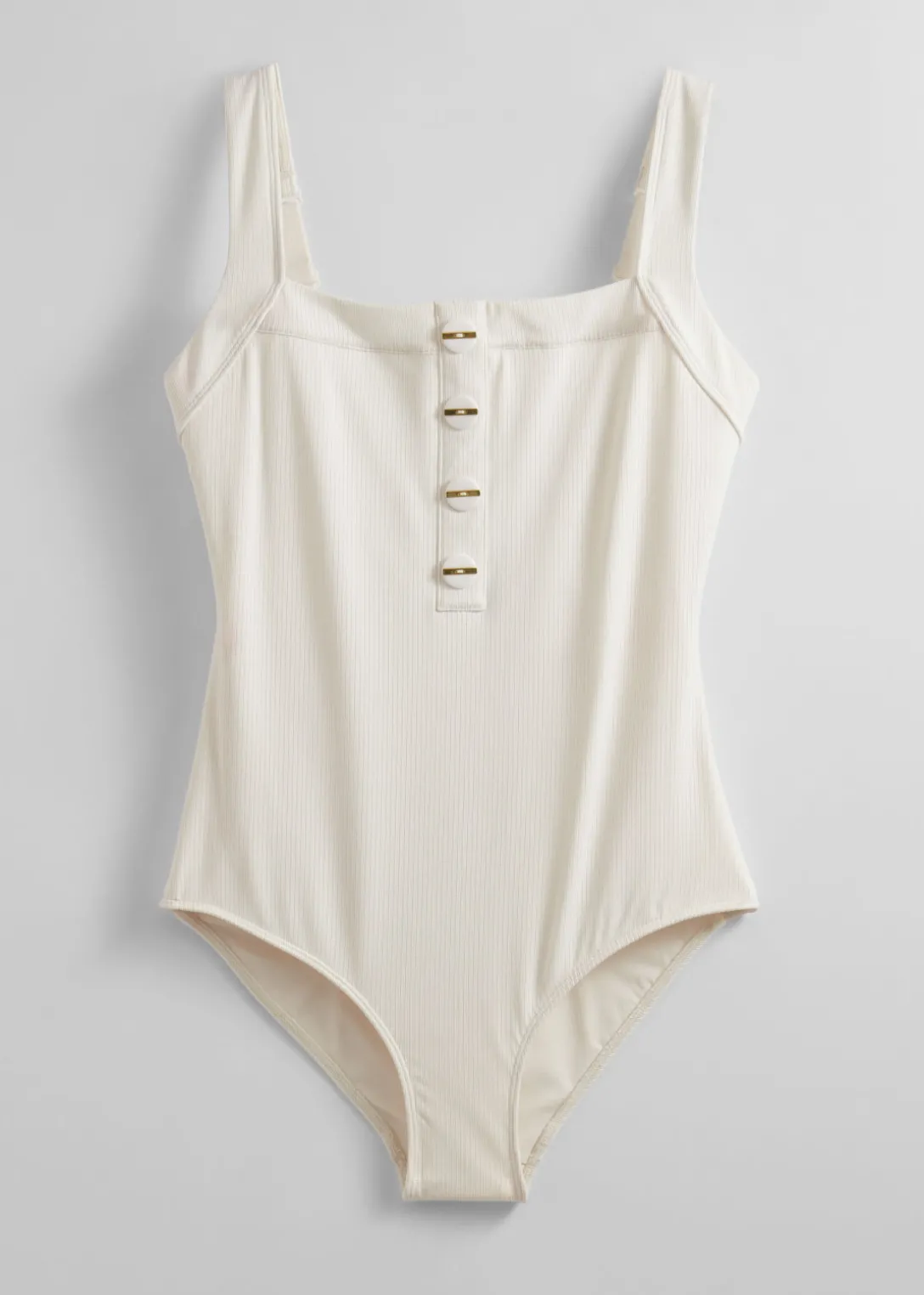 Maillot de bain côtelé, orné de 5 boutons décoratifs.