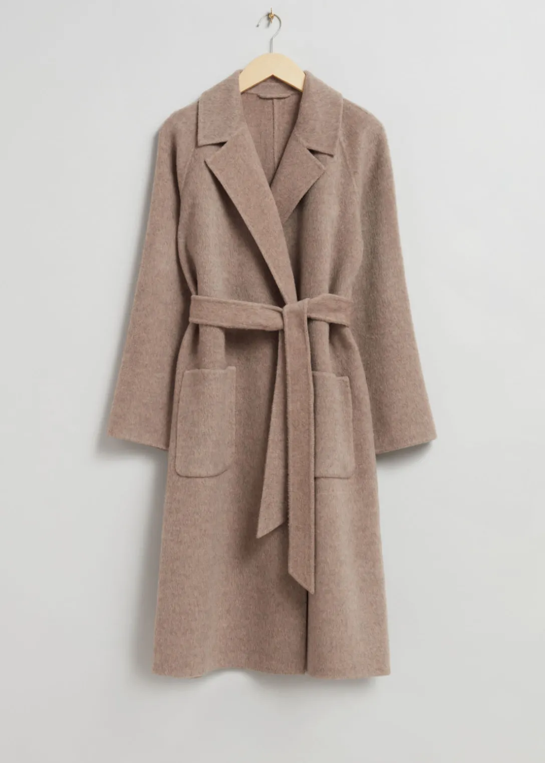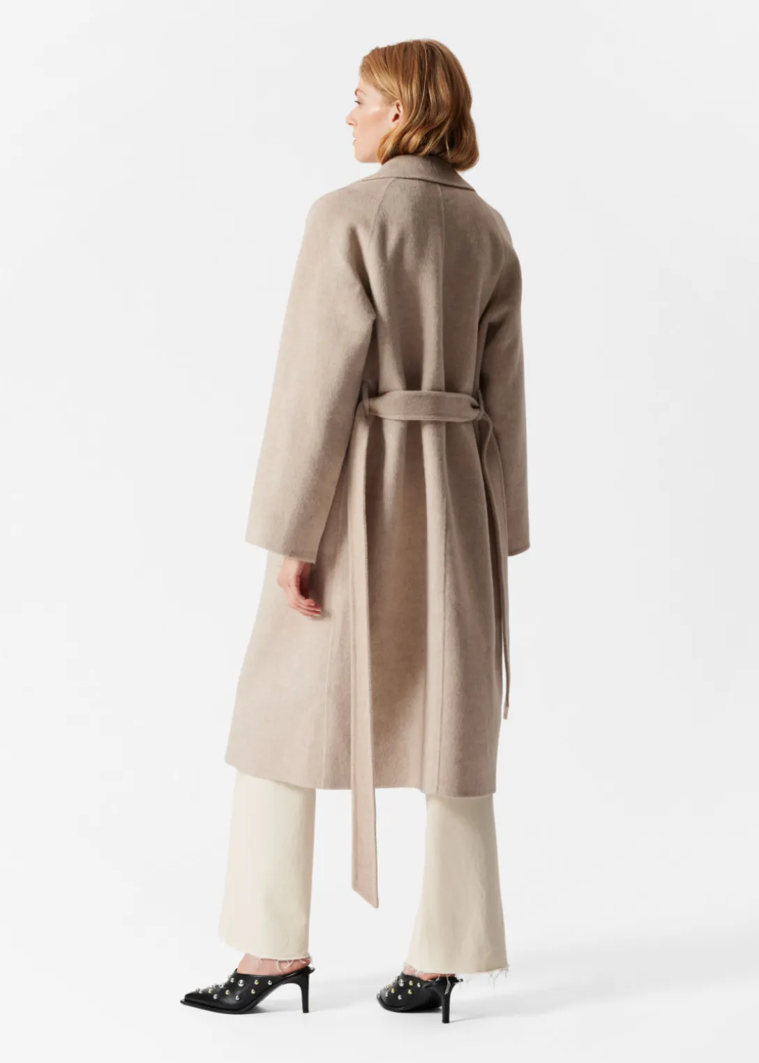Ce manteau décontracté se ferme à l’aide d’une ceinture assortie ton sur ton à nouer. Il est doté de grandes poches plaquées.