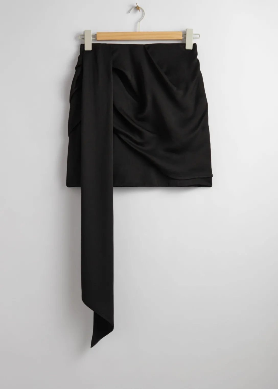 Mini-jupe drapée à superposition avec lien sur le côté.