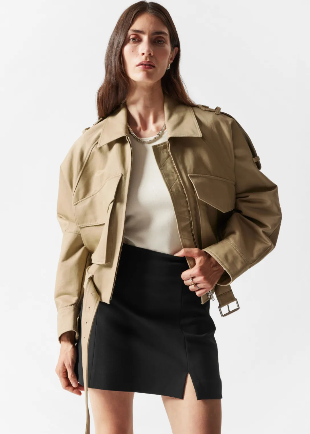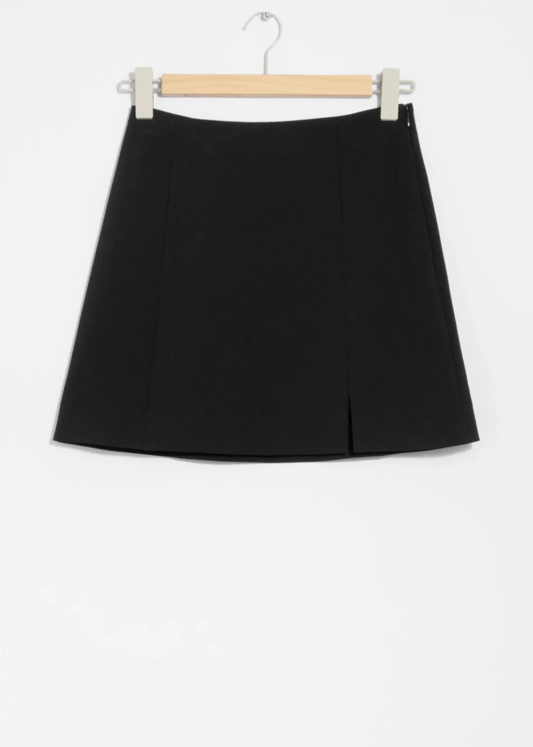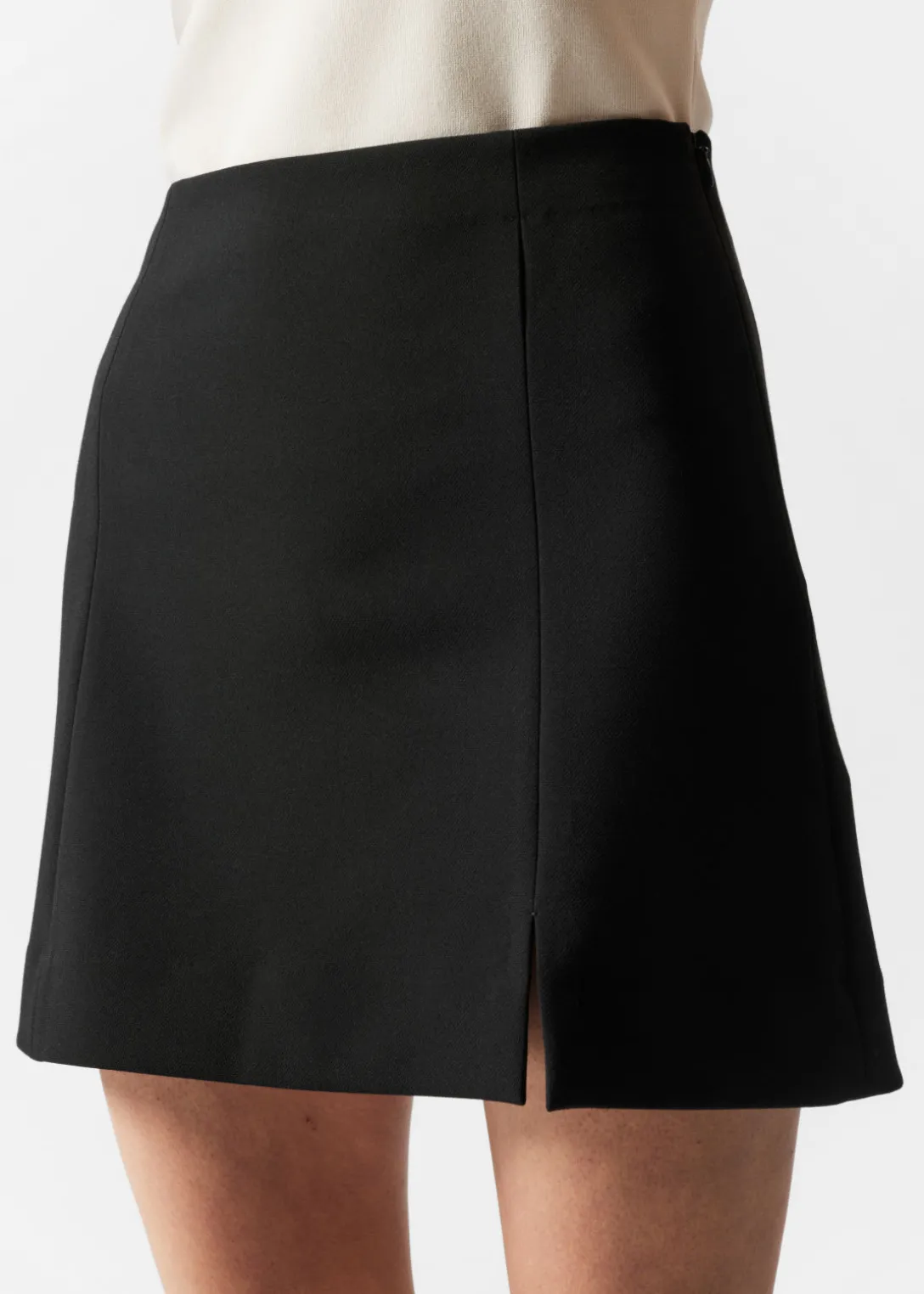 Mini-jupe à taille haute, dotée d’une finition épurée et de découpes verticales.