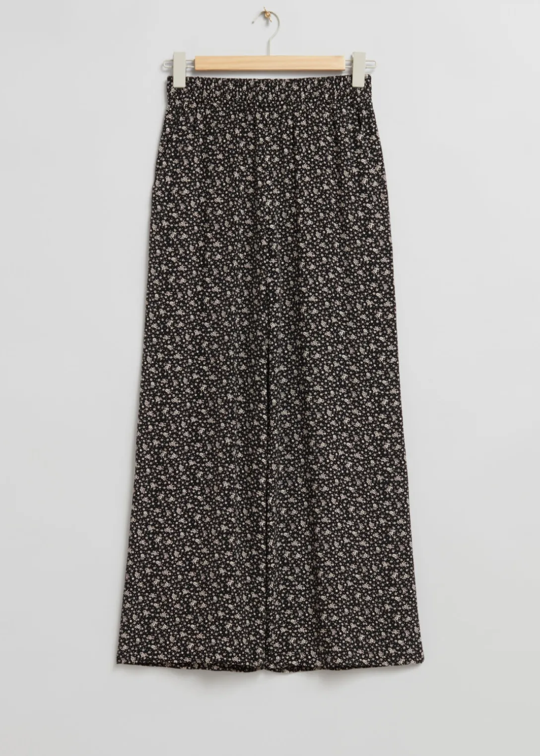 Pantalon en tissu imprimé qui dessine une silhouette confortable renforcée par une taille élastiquée.