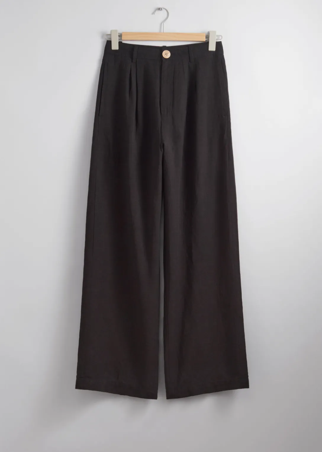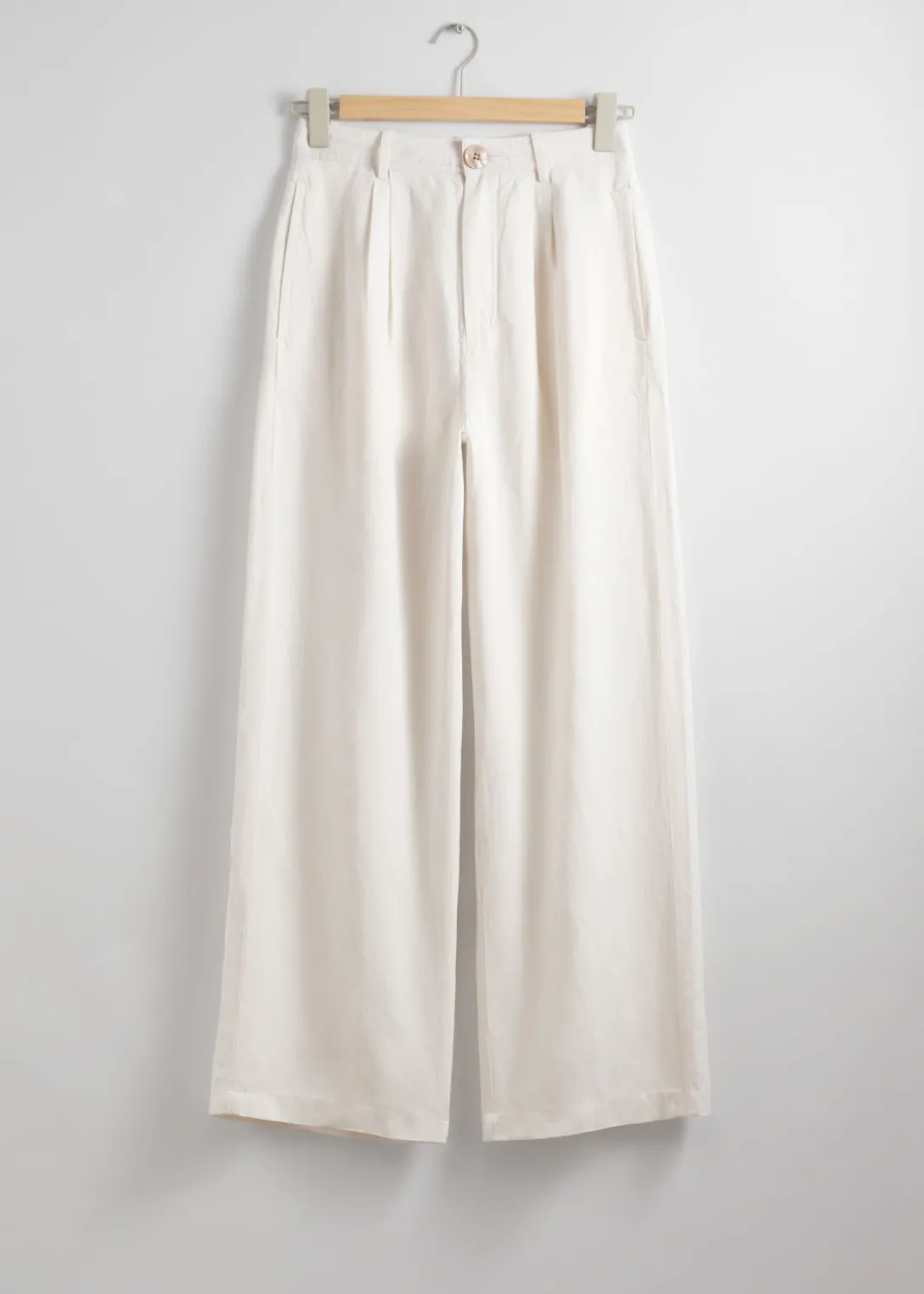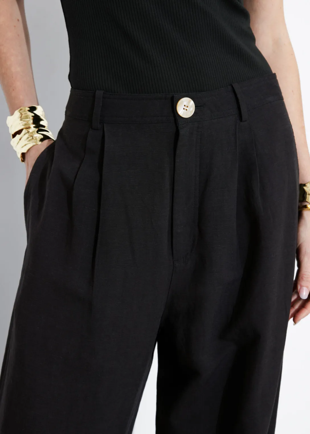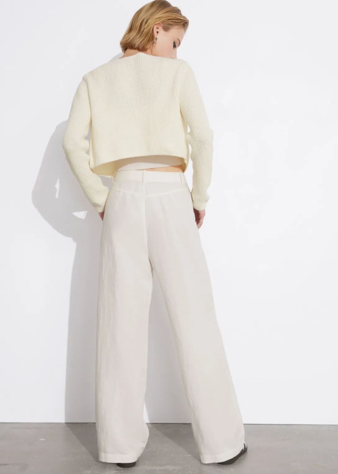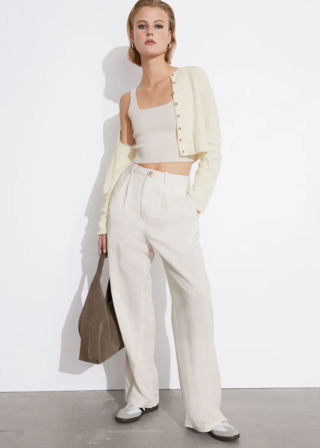Pantalon taille haute, confectionné à partir d’une matière légère et aérienne. Doté d’une silhouette décontractée.