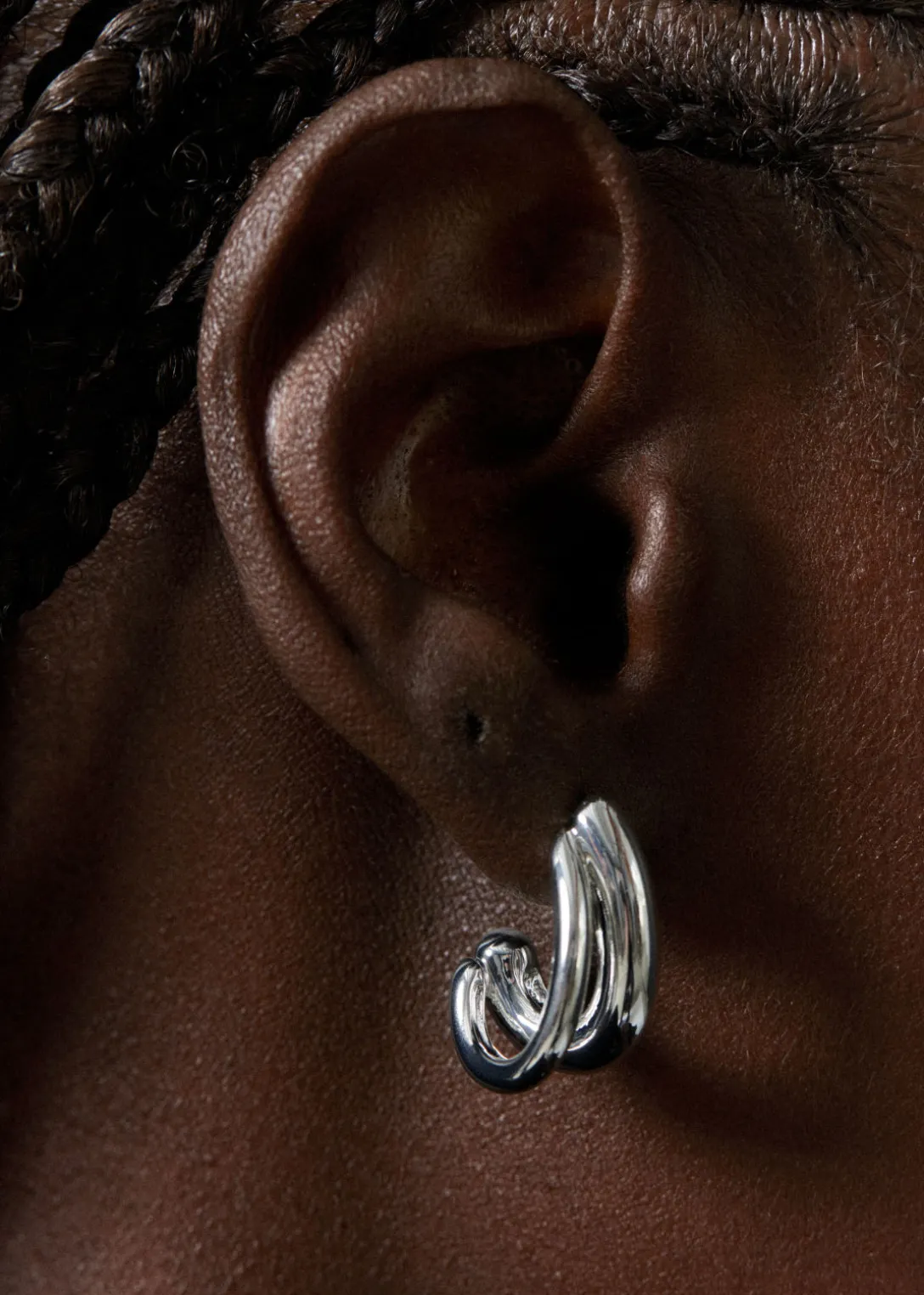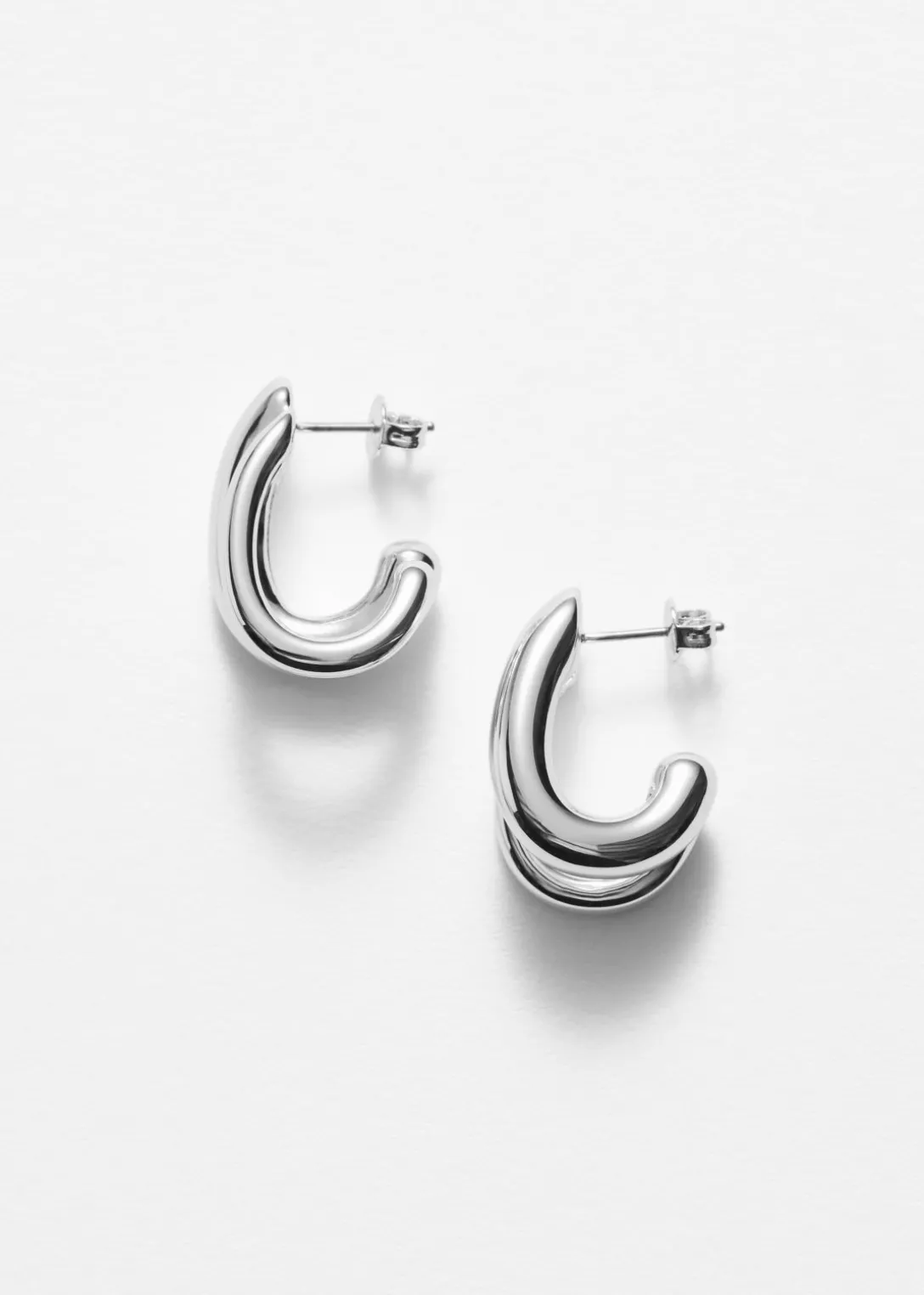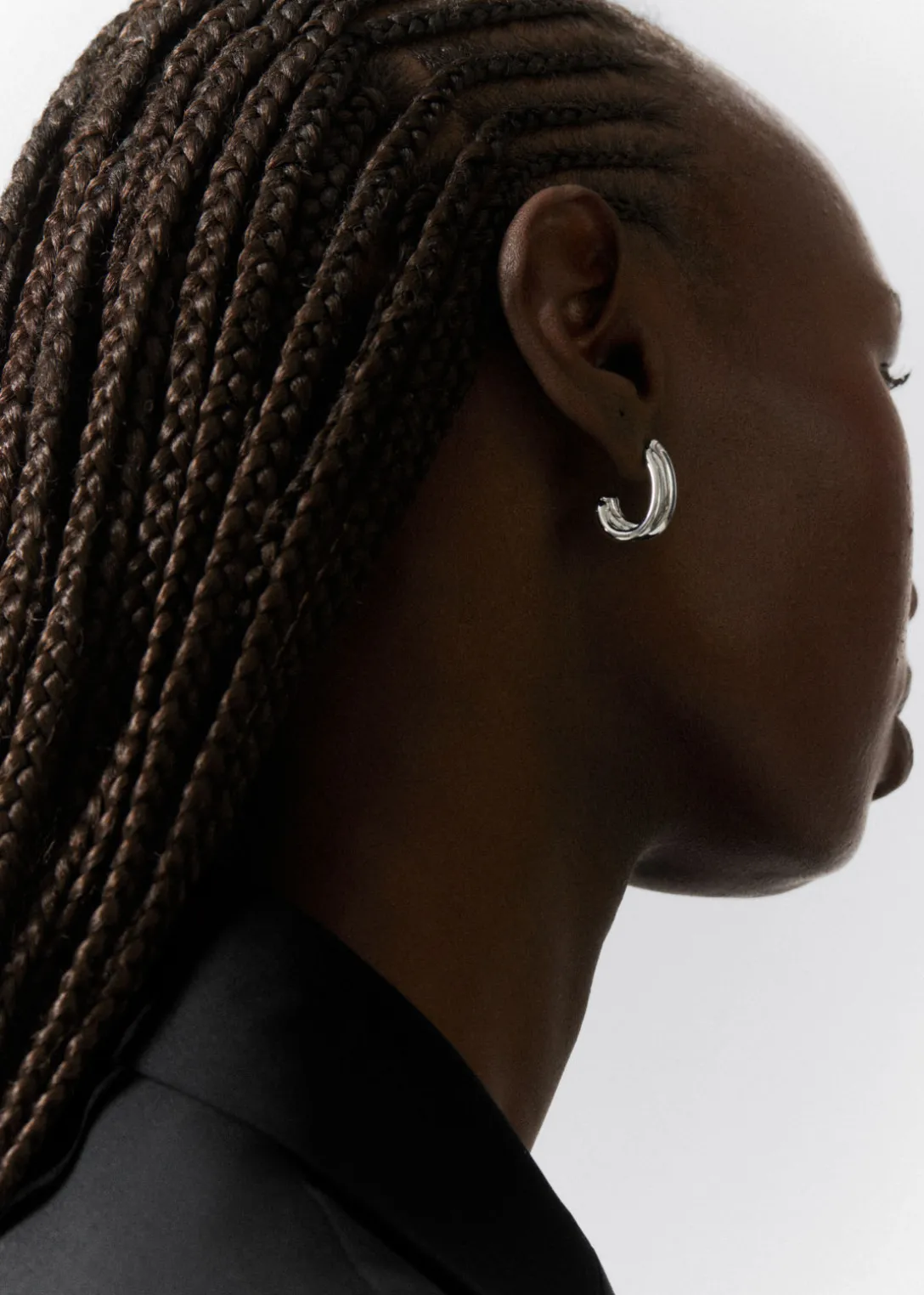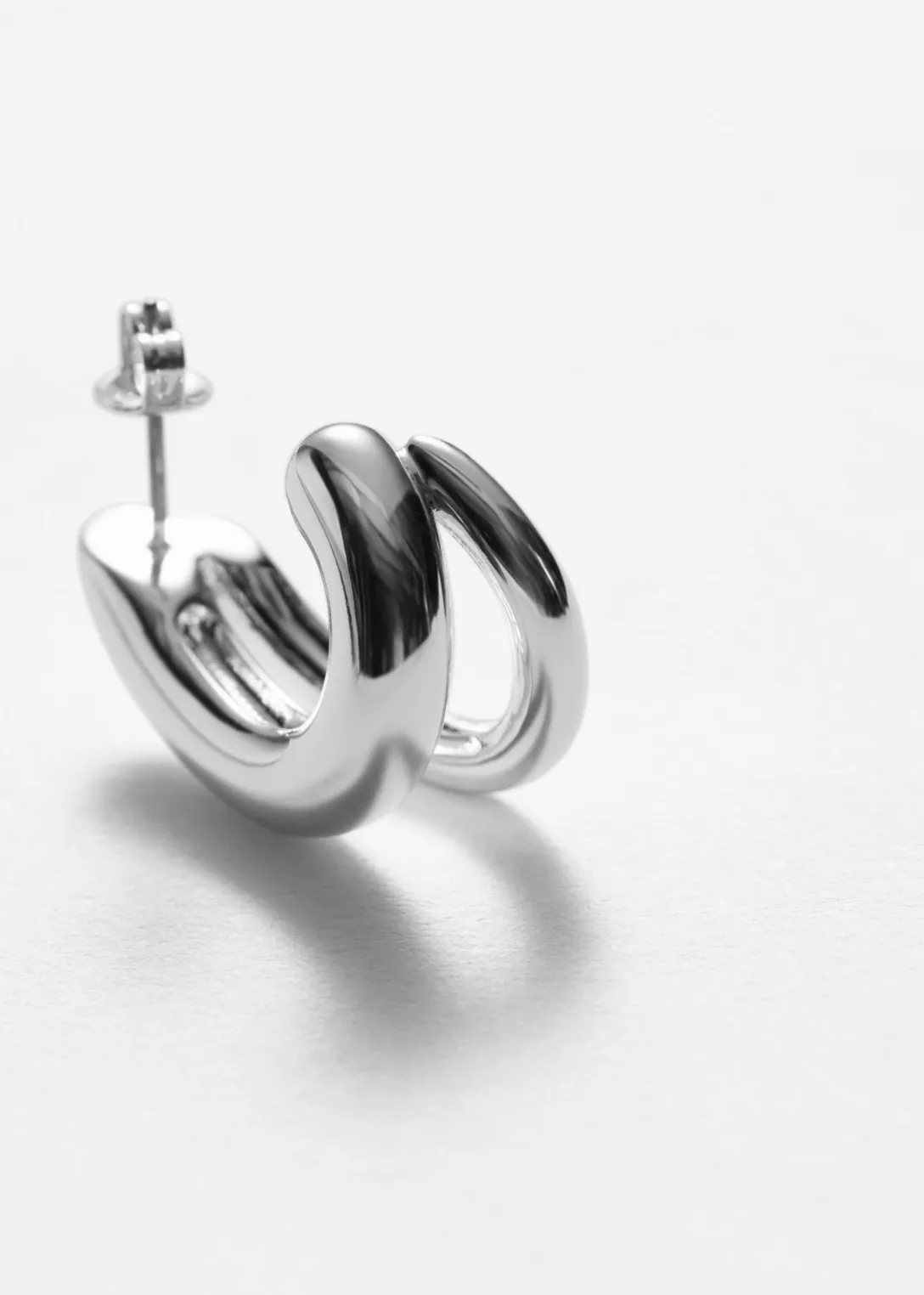 Confectionnées en laiton poli, ces boucles d’oreilles présentent deux rangées et des fermoirs papillon.