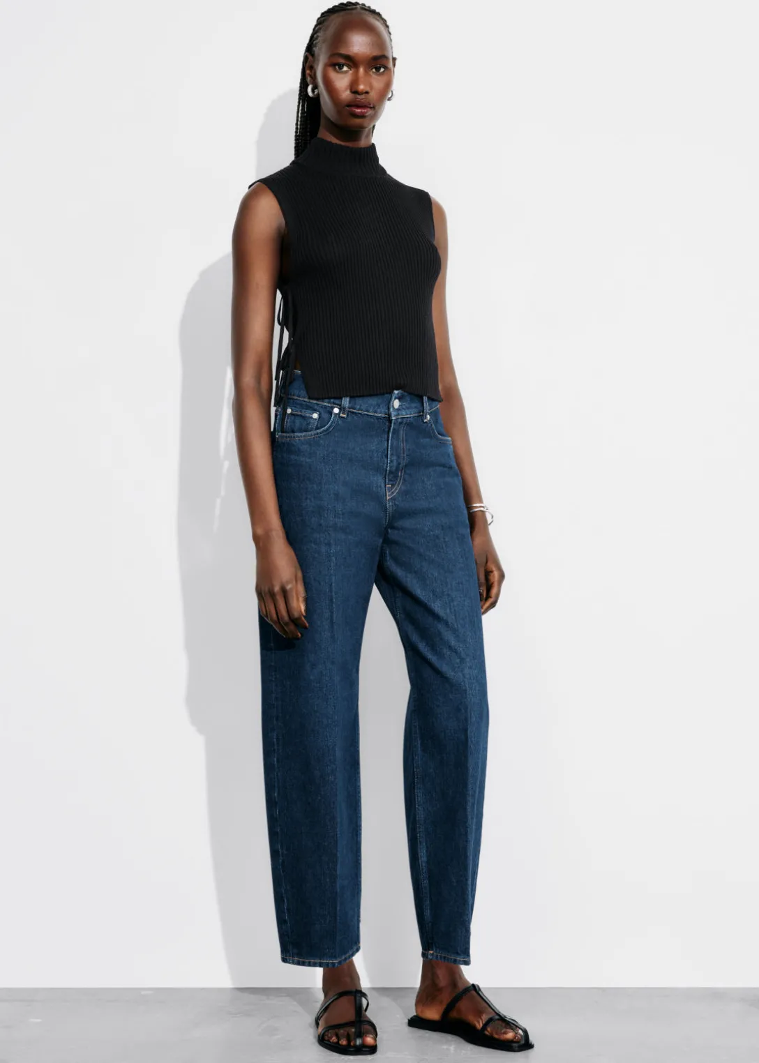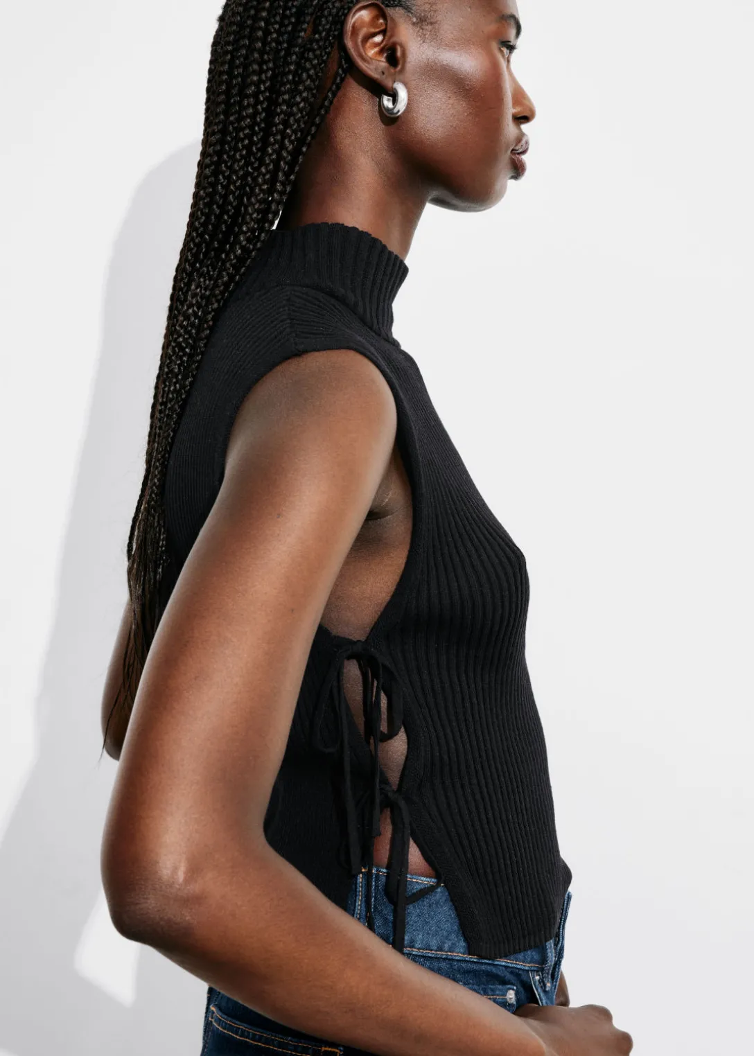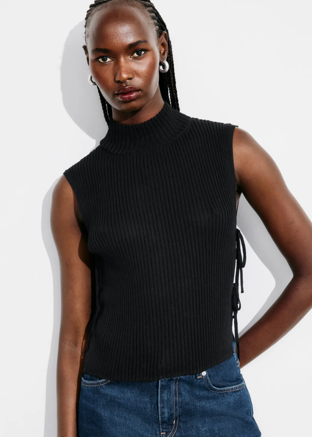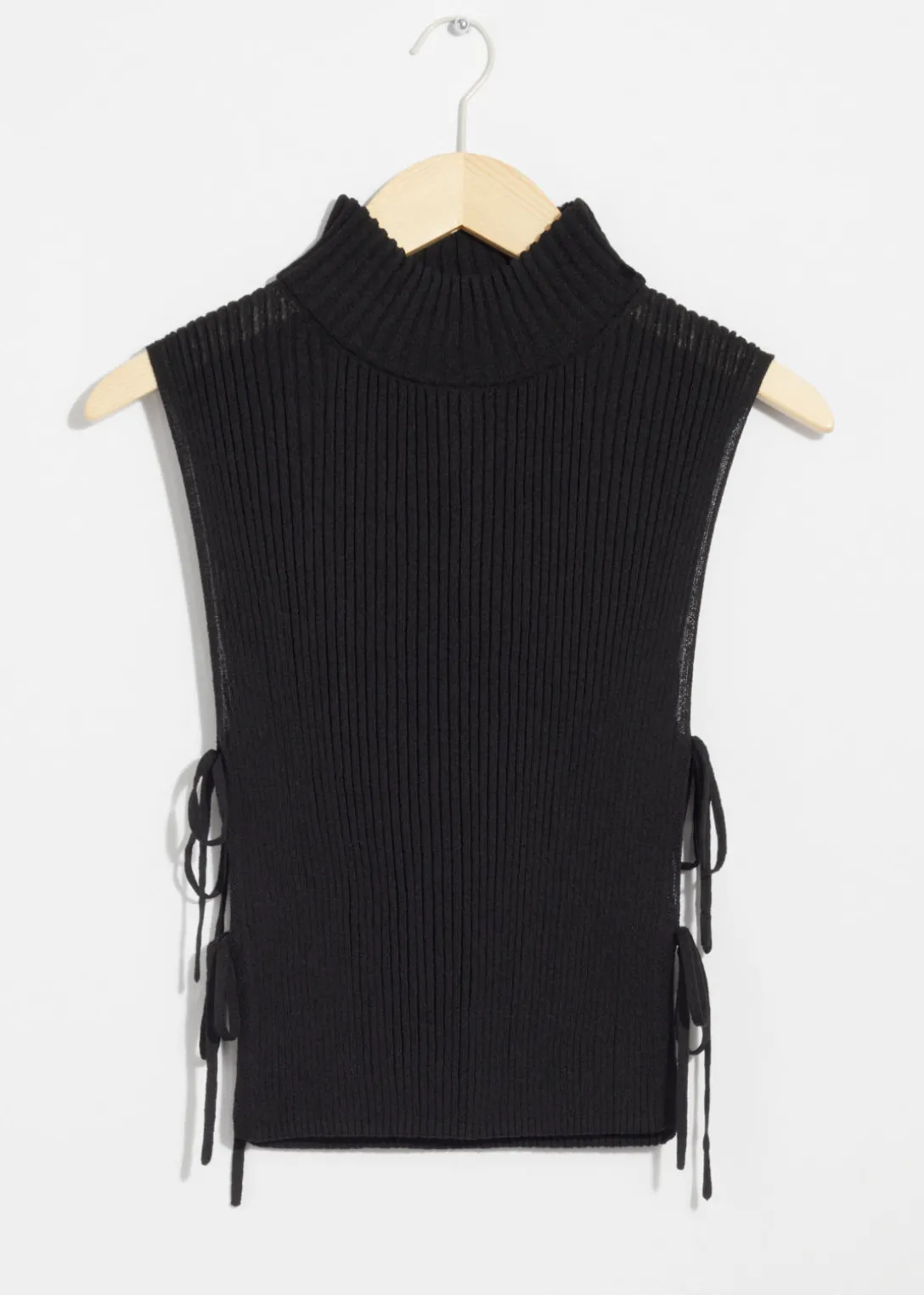 Plastron à col montant en laine. L’empiècement est légèrement plus long au dos. Ce débardeur hybride doux et côtelé est doté de bandes sur les côtés pour un ajustement parfait.