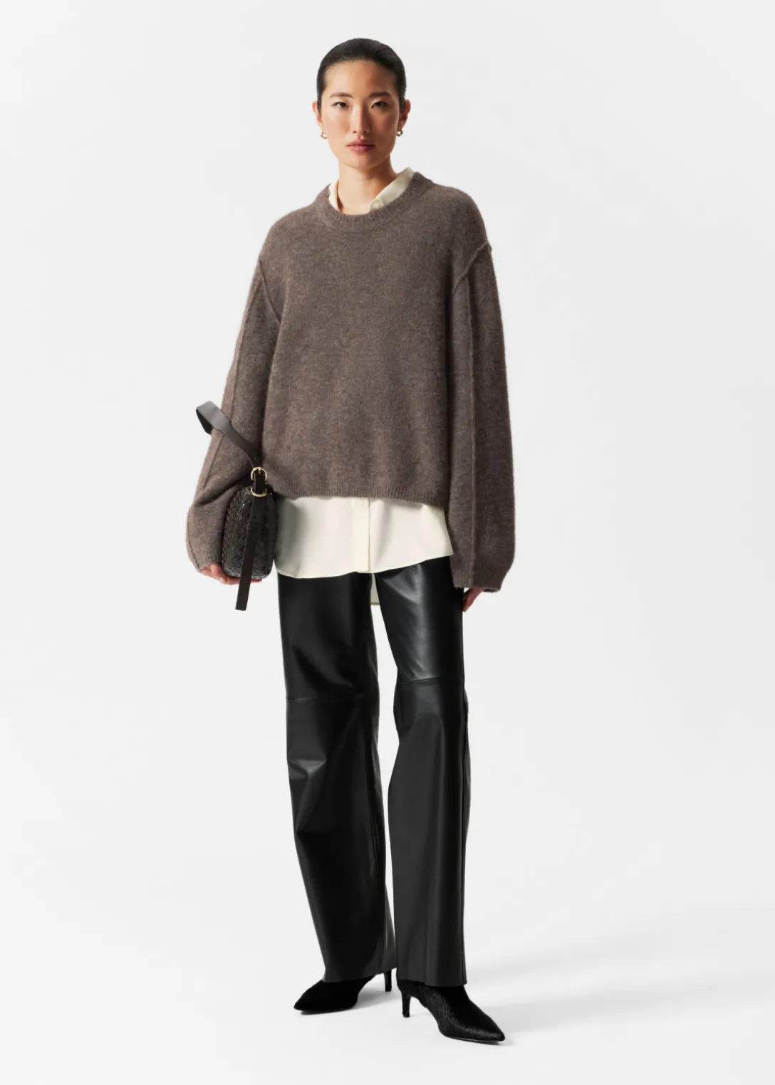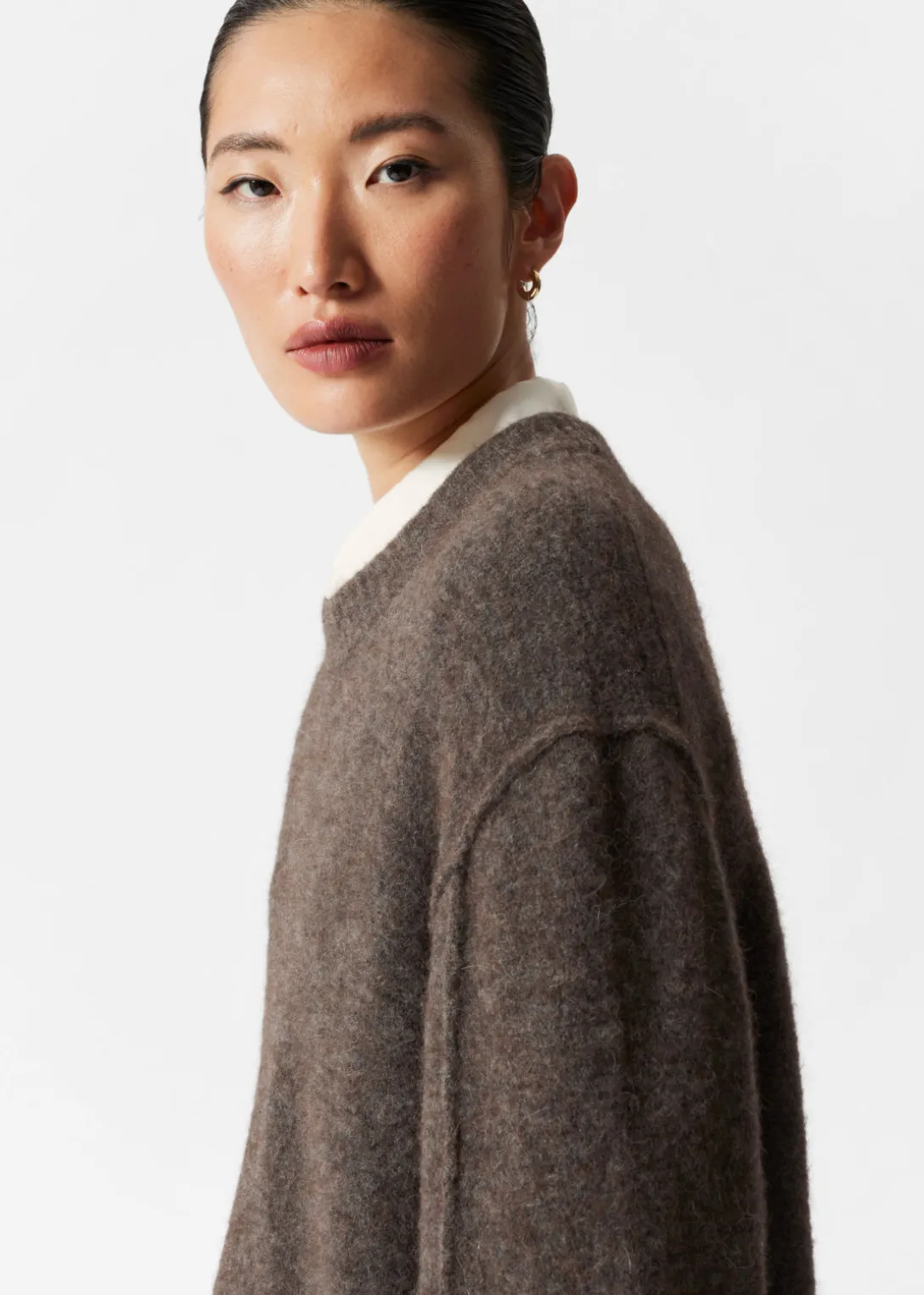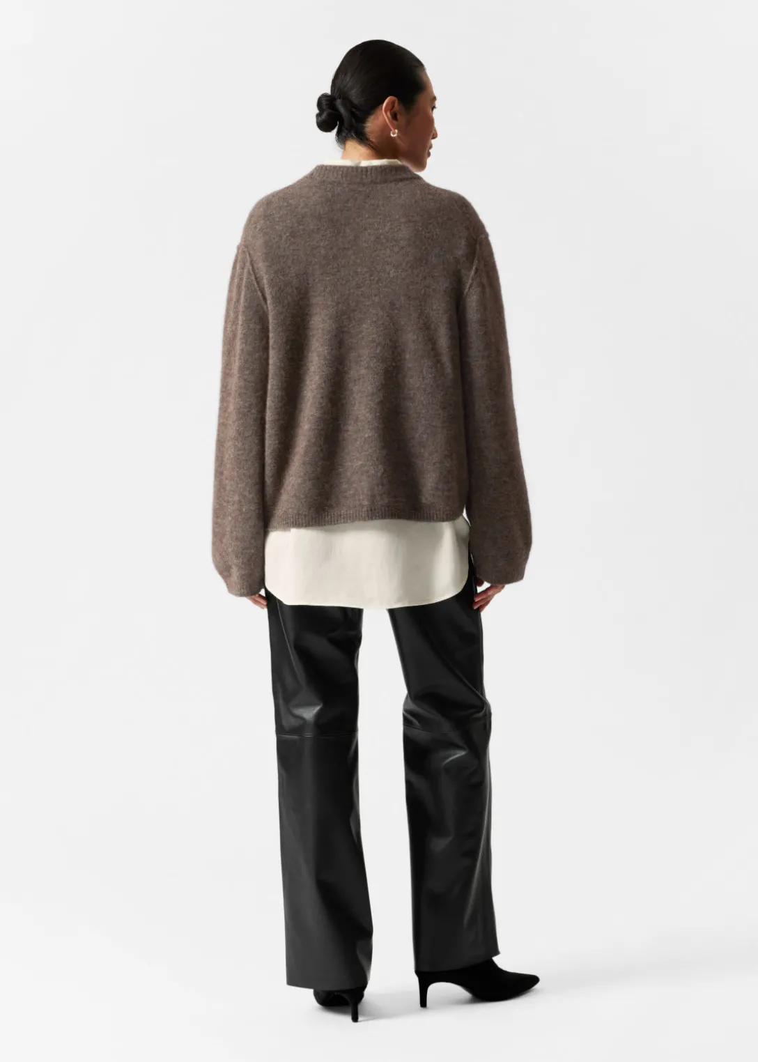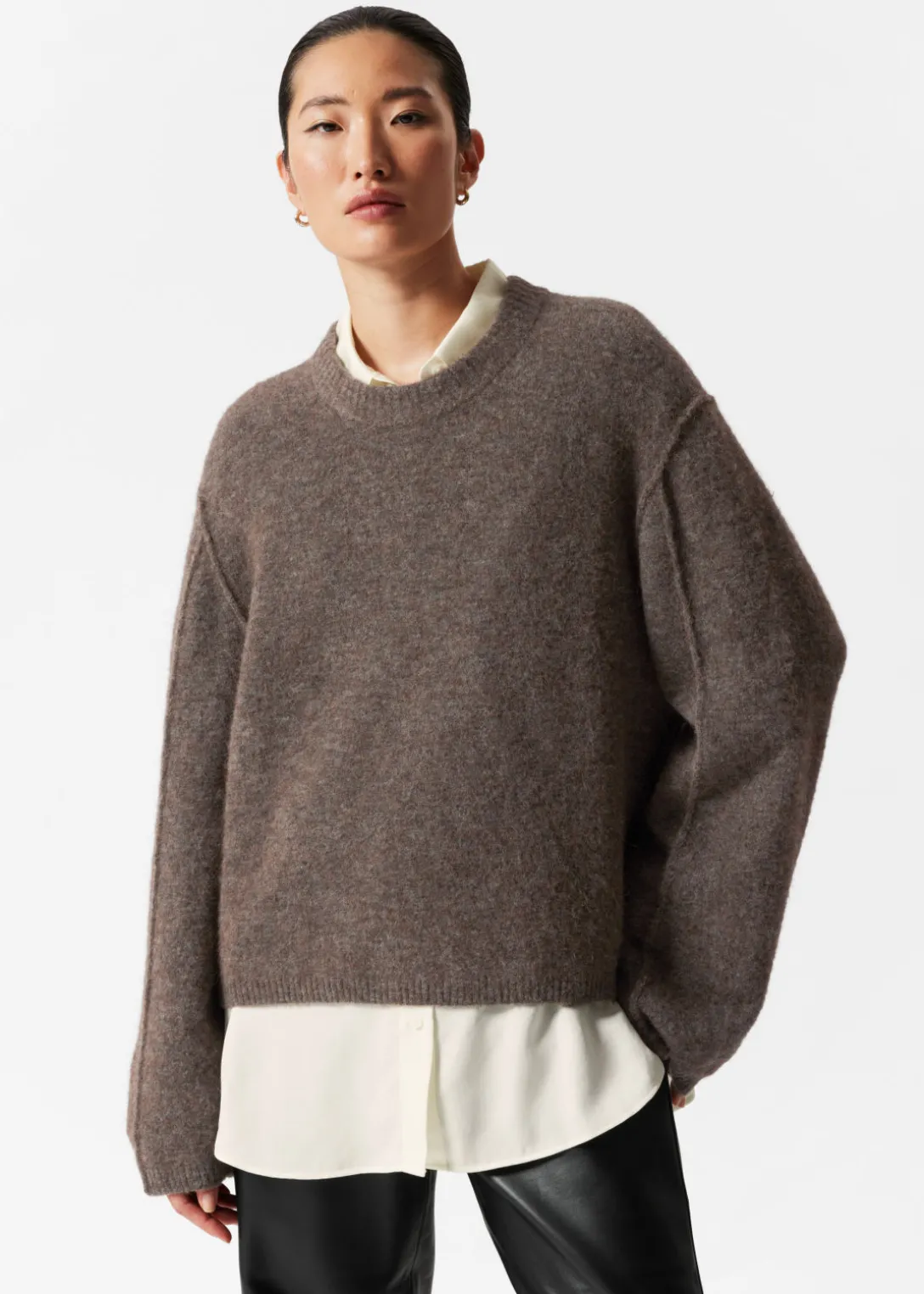 Pull à manches longues, confectionné à partir d’un mélange d’alpaga et de laine.