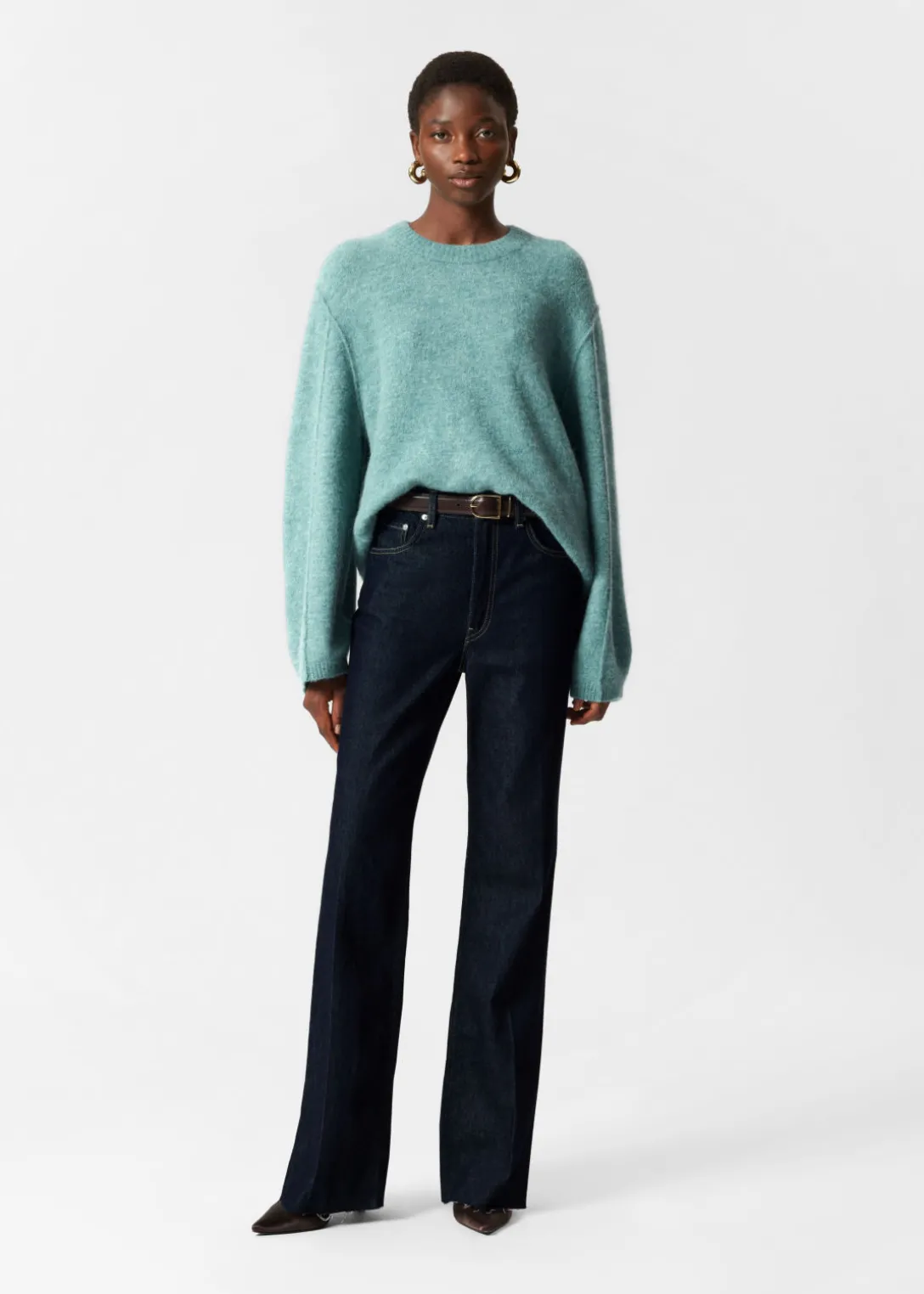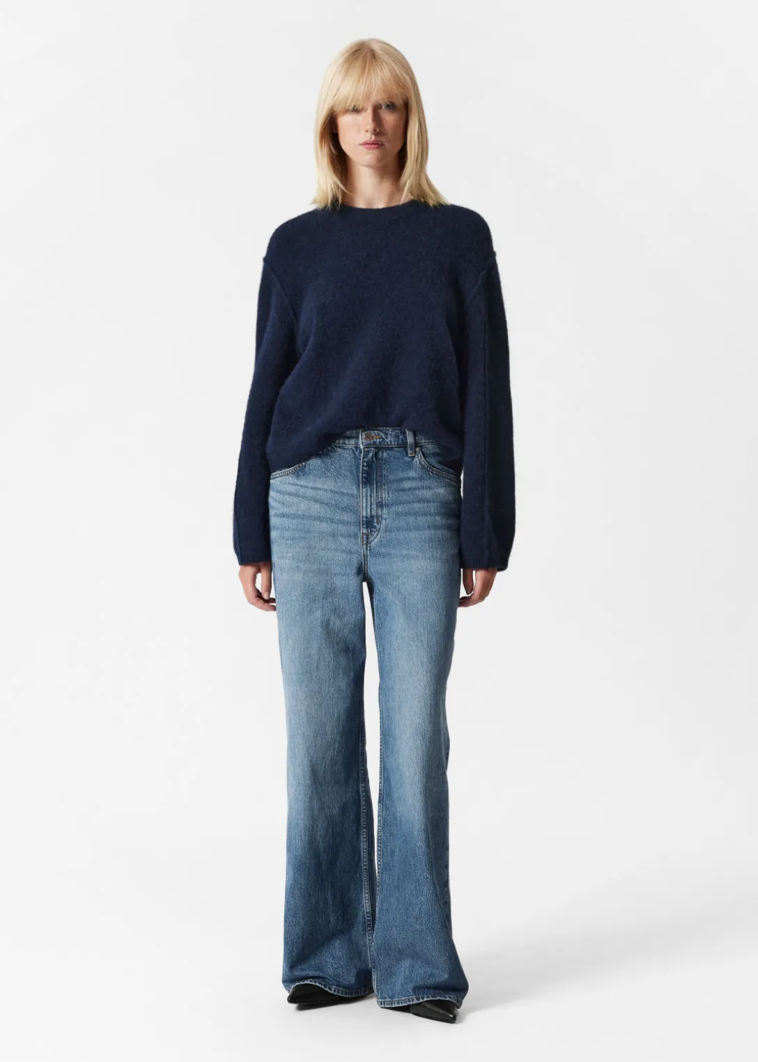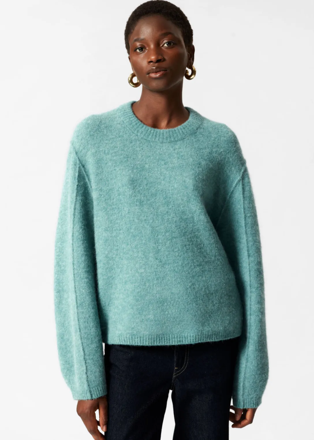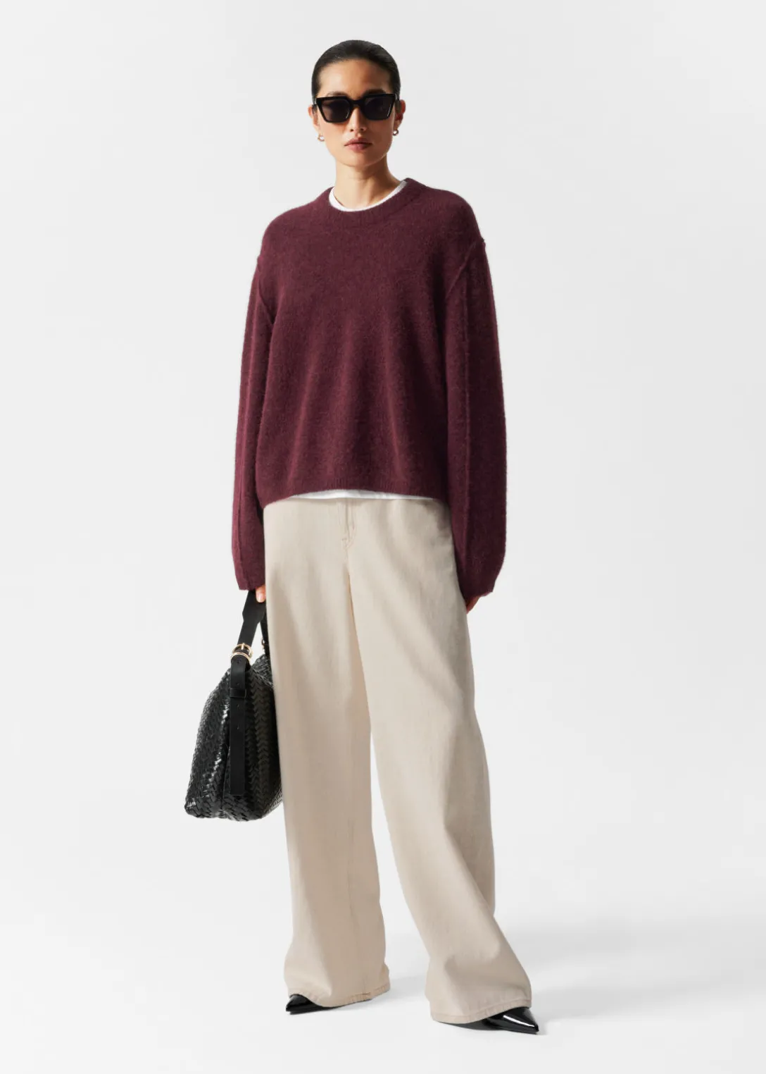 Pull à manches longues, confectionné à partir d’un mélange d’alpaga et de laine.