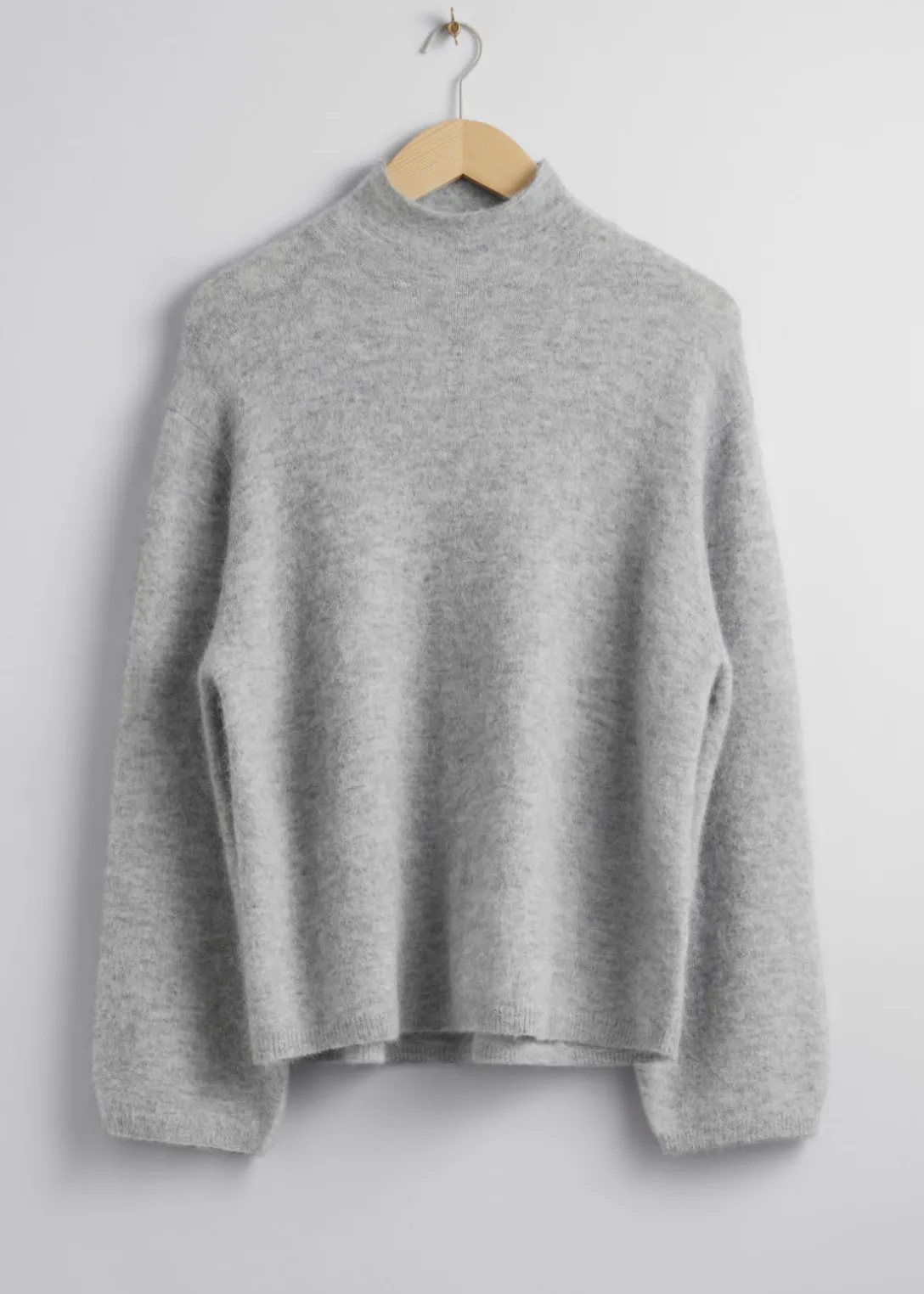 Pull à col montant, confectionné à partir d’un mélange d’alpaga et de laine.