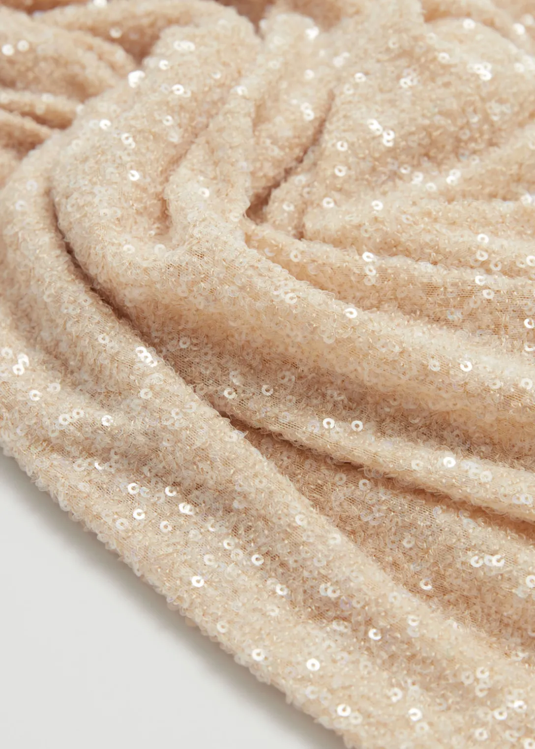 Robe longue à manches longues avec finition pailletée. Elle présente une encolure dégagée et une fente latérale.