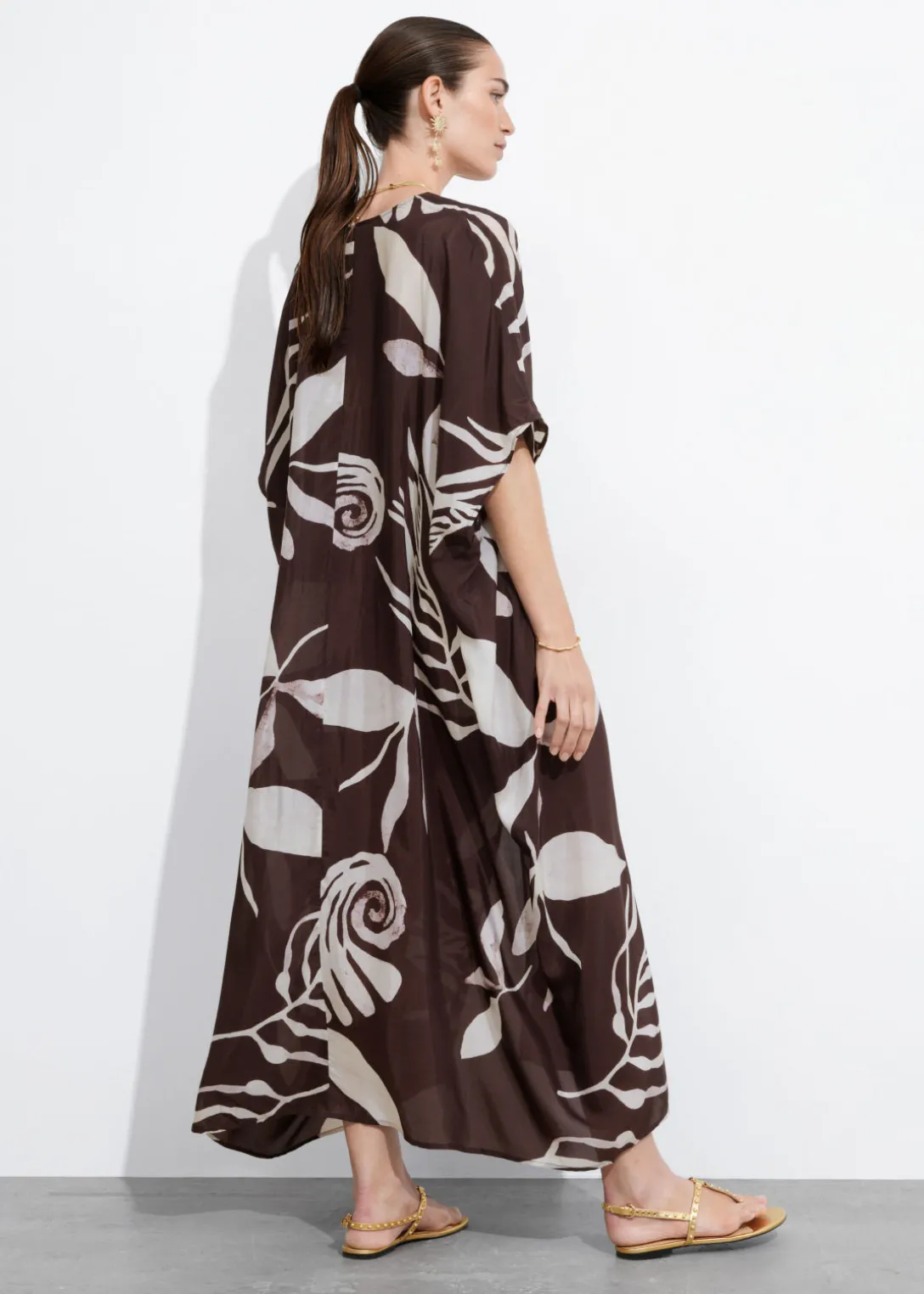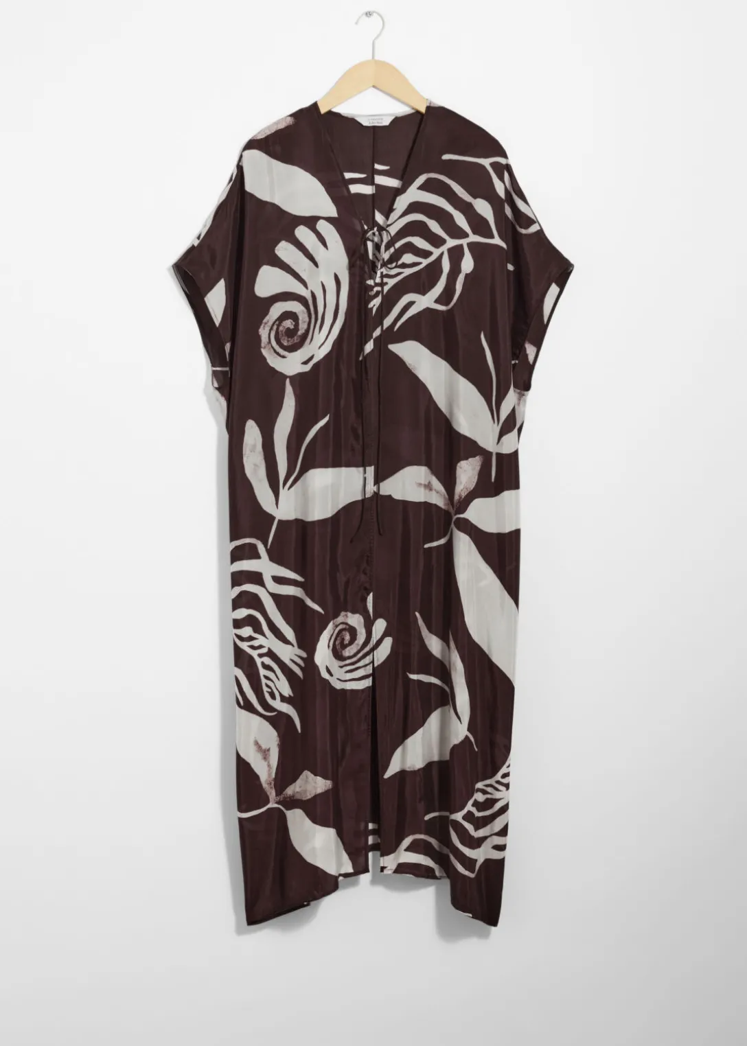 Robe midi imprimée avec encolure en V tenue par une cravate.