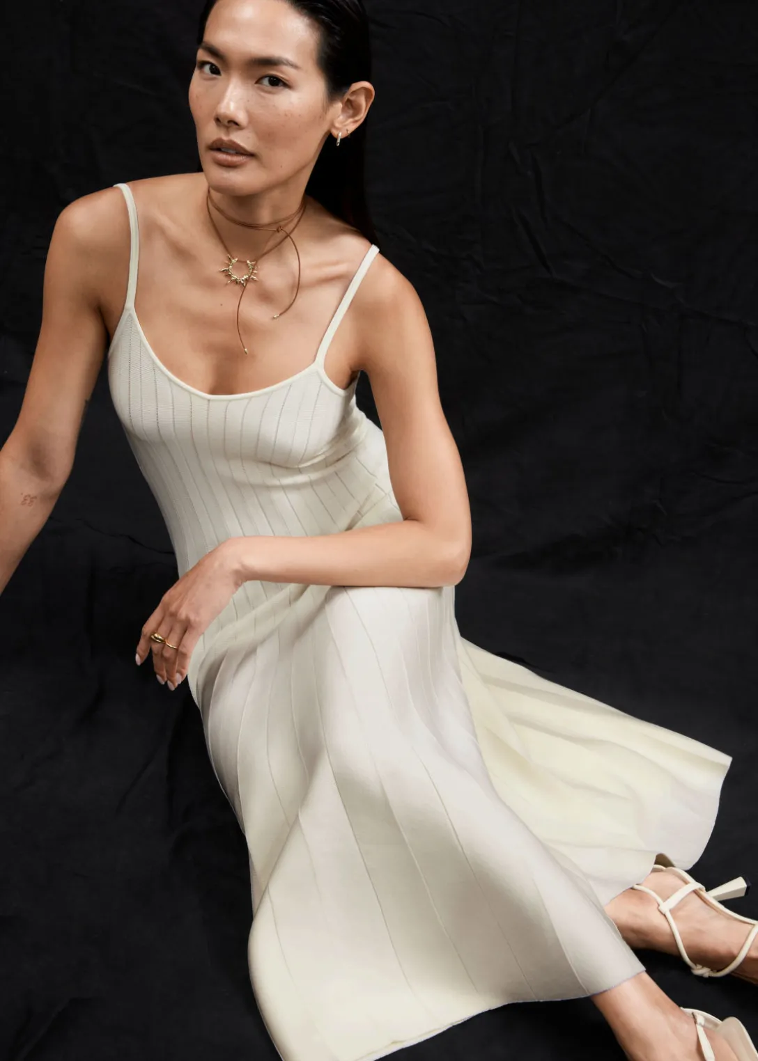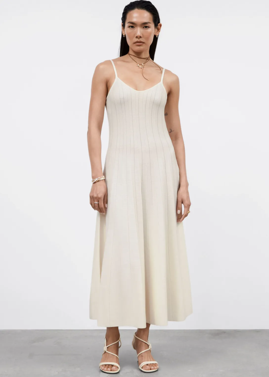 Robe midi avec des bretelles fines et une silhouette trapèze plissée.