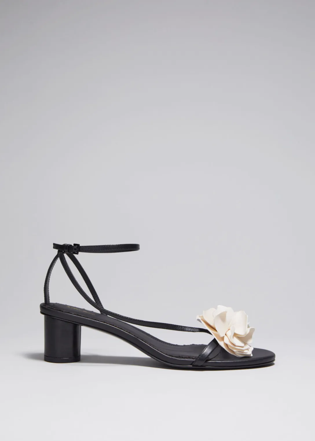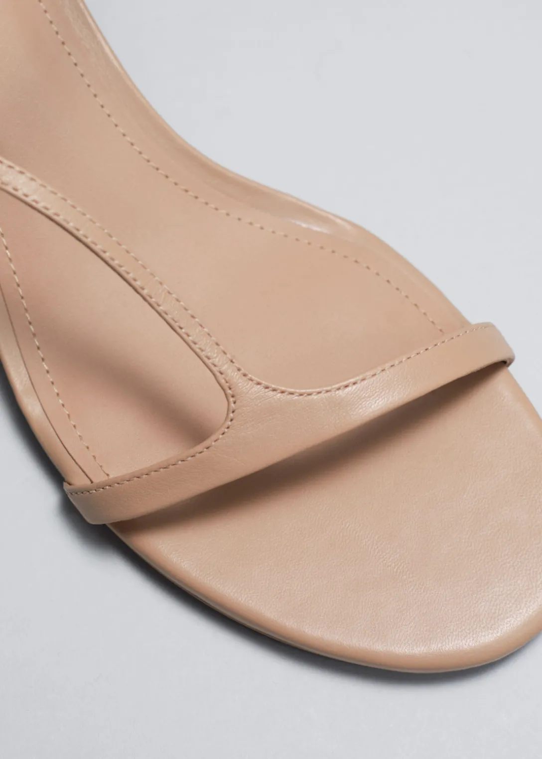 Confectionnées en cuir nappa voluptueusement souple, ces sandales présentent des bouts en amande et des talons épais arrondis. Dotées de boucles ton sur ton délicates.