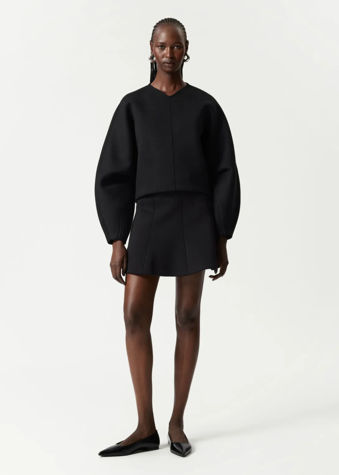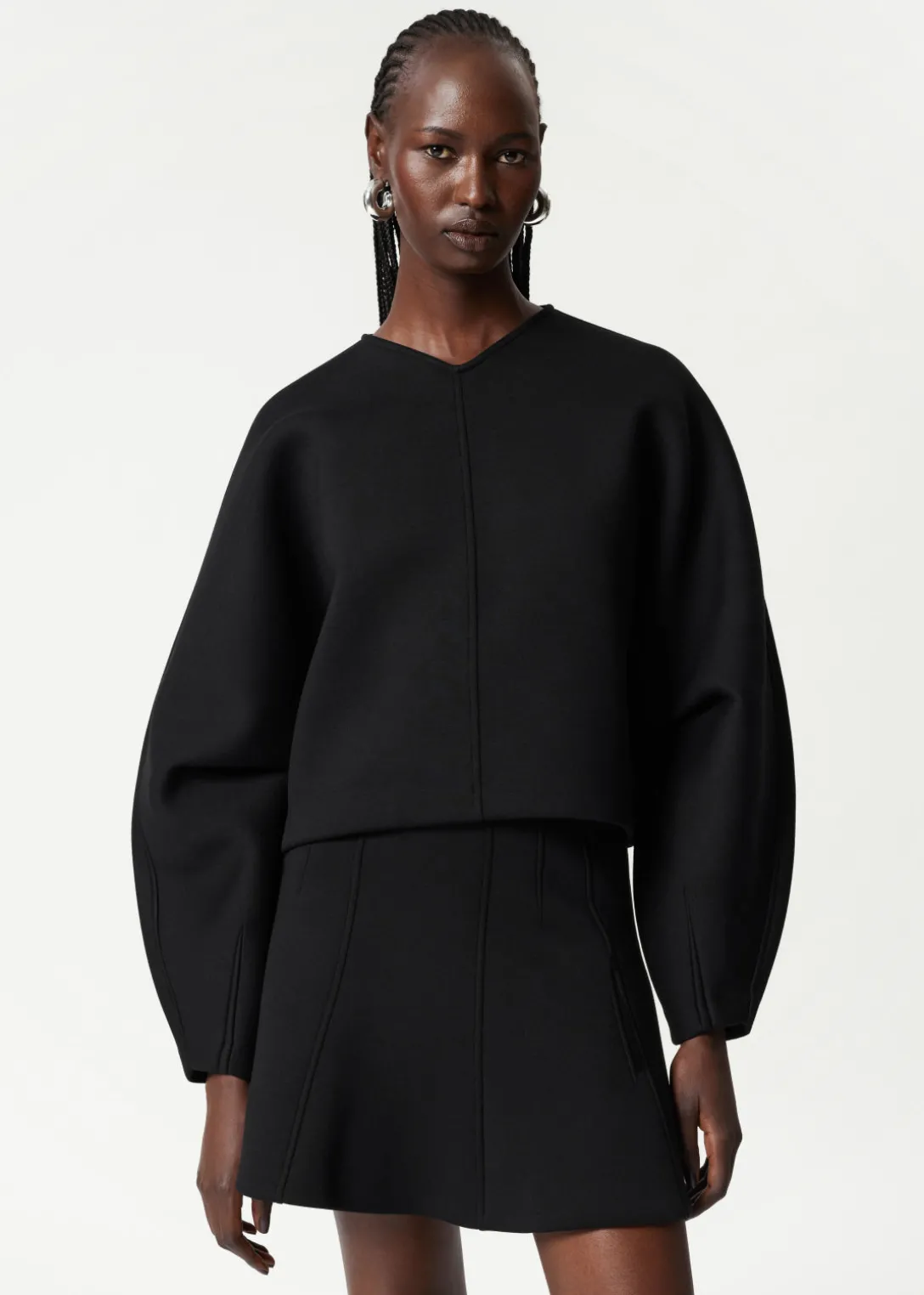 Sweat en néoprène, doté d’une encolure en V et d’une couture centrale à l’avant.