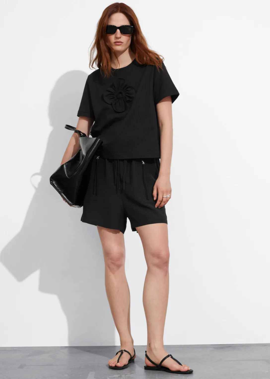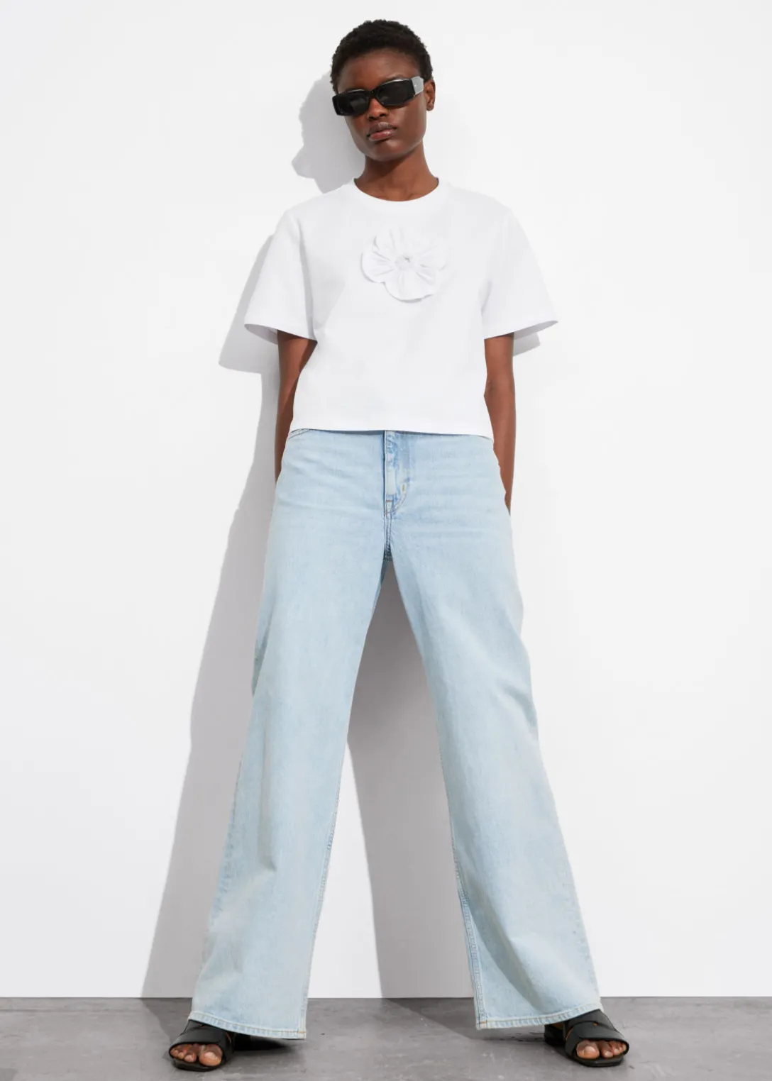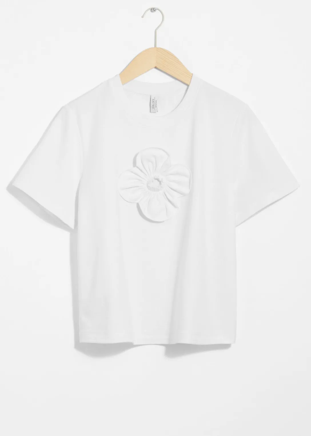 T-shirt à col rond, avec un grand motif floral appliqué au centre devant.